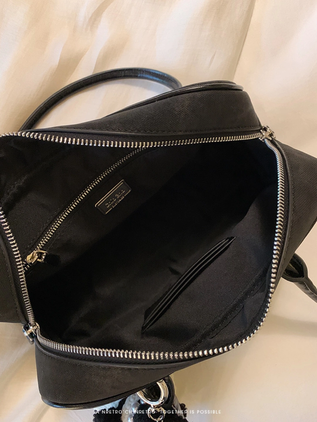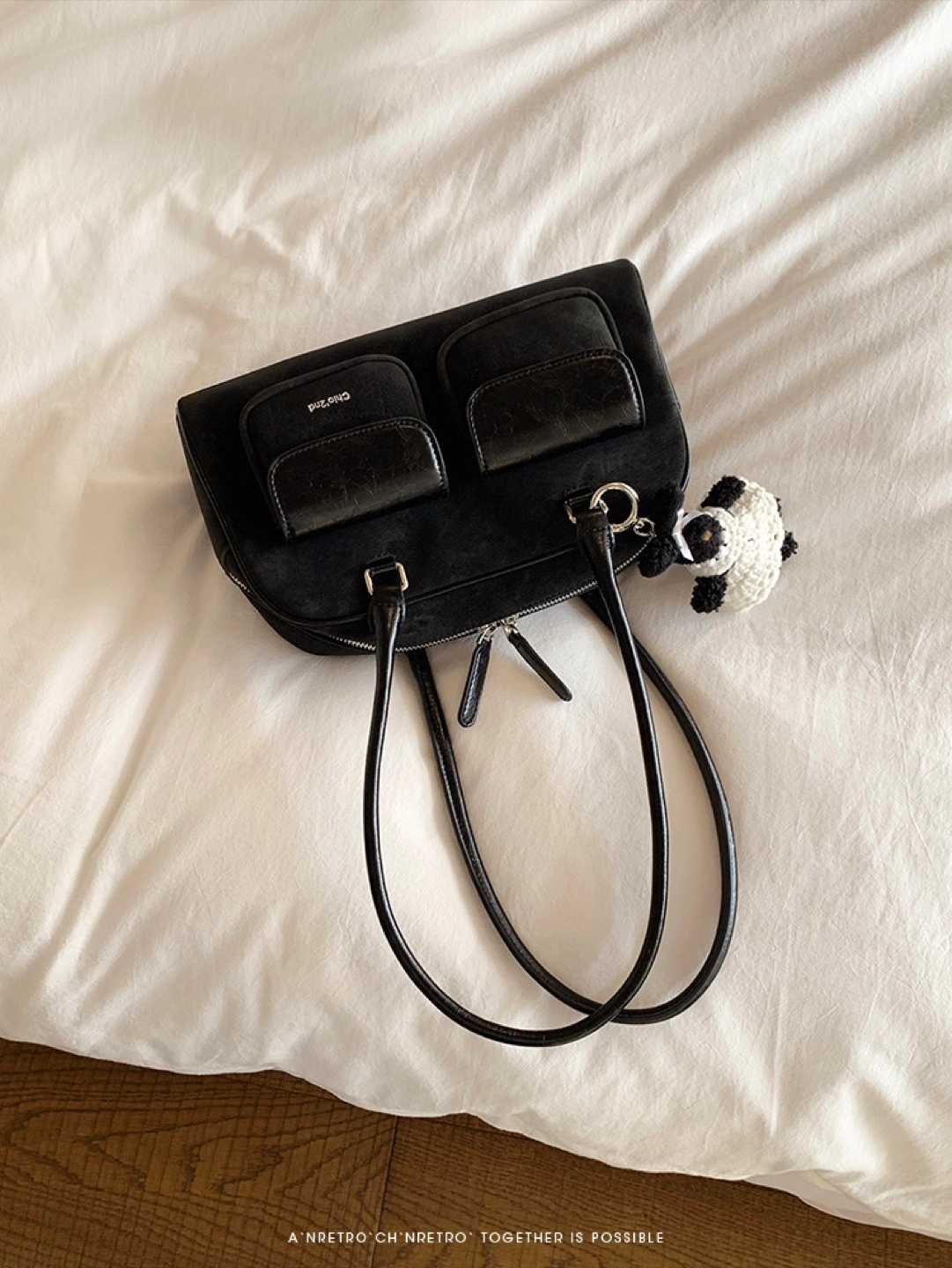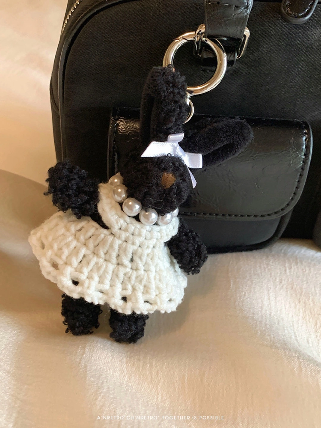 Beautiful black bag. Comes with two small pockets on the front. A lovely pearl necklace decorates the neck of the rabbit charm. A great bag for a leisurely walk in the park.