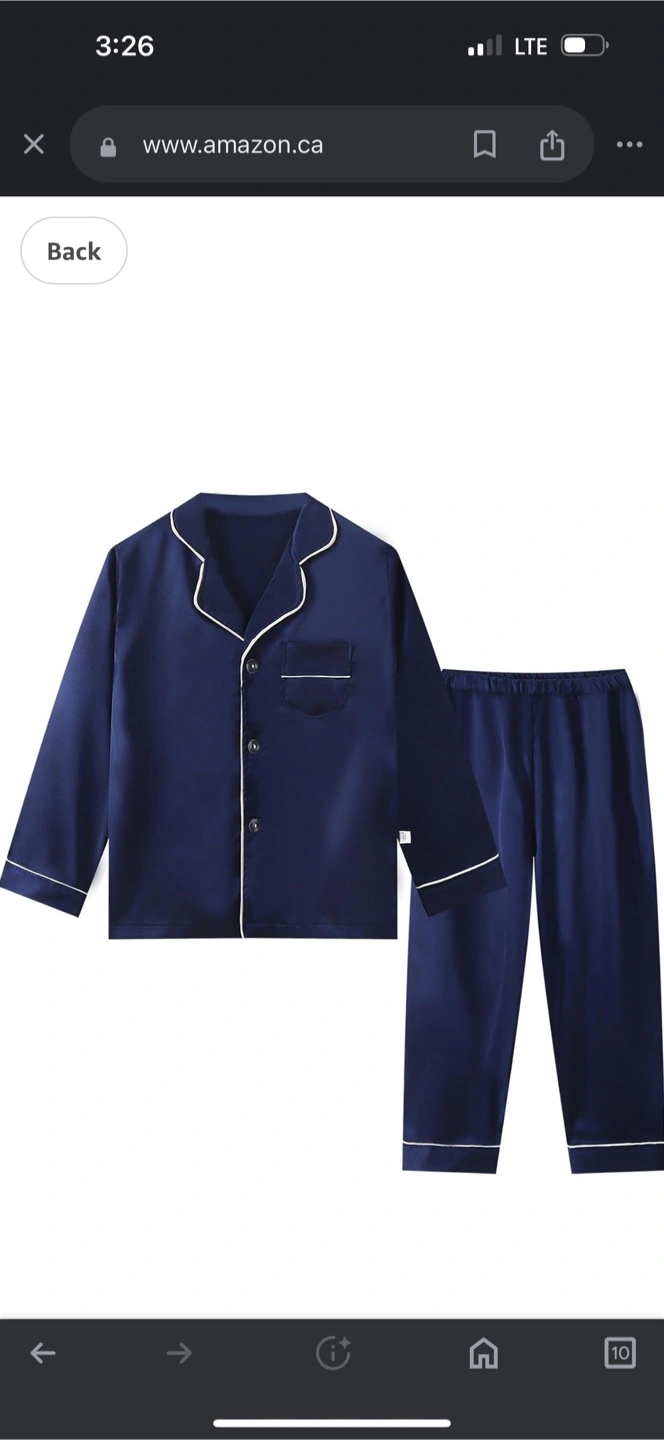 A comfortable pajama set. Features a button-up top and pants. Designed in a navy blue. Could be just what you need for a good night's sleep.