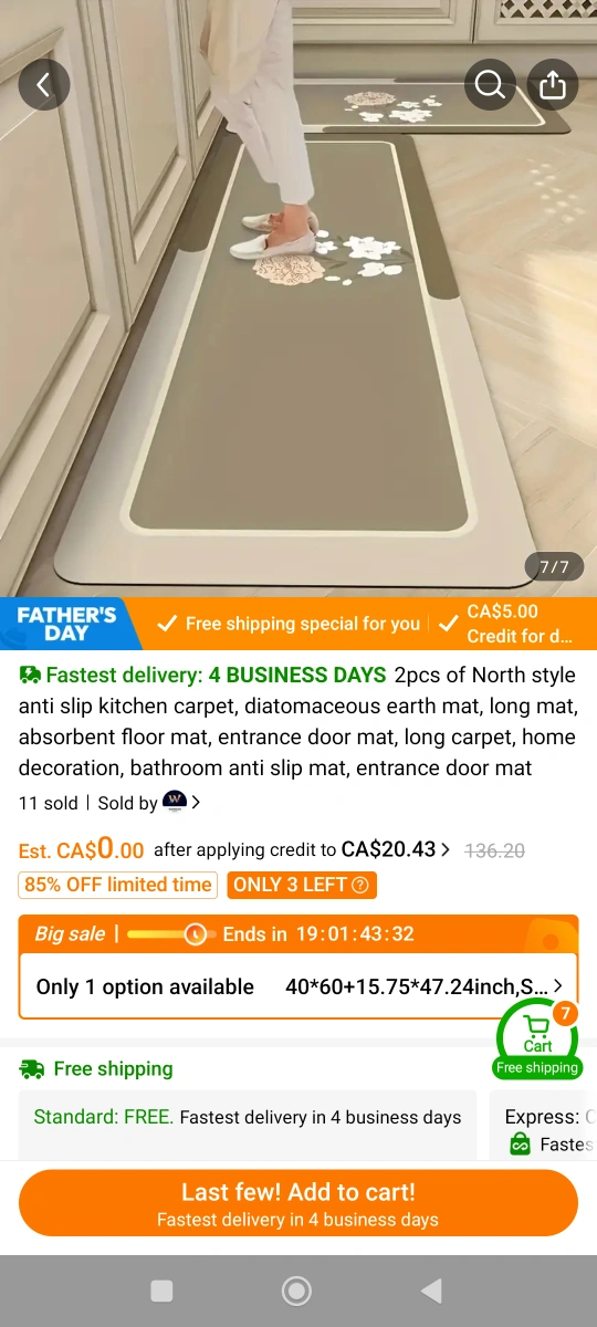 A new North style anti slip kitchen carpet. Small flower pattern. Absorbs water. A great addition to create a calming atmosphere in your home.
