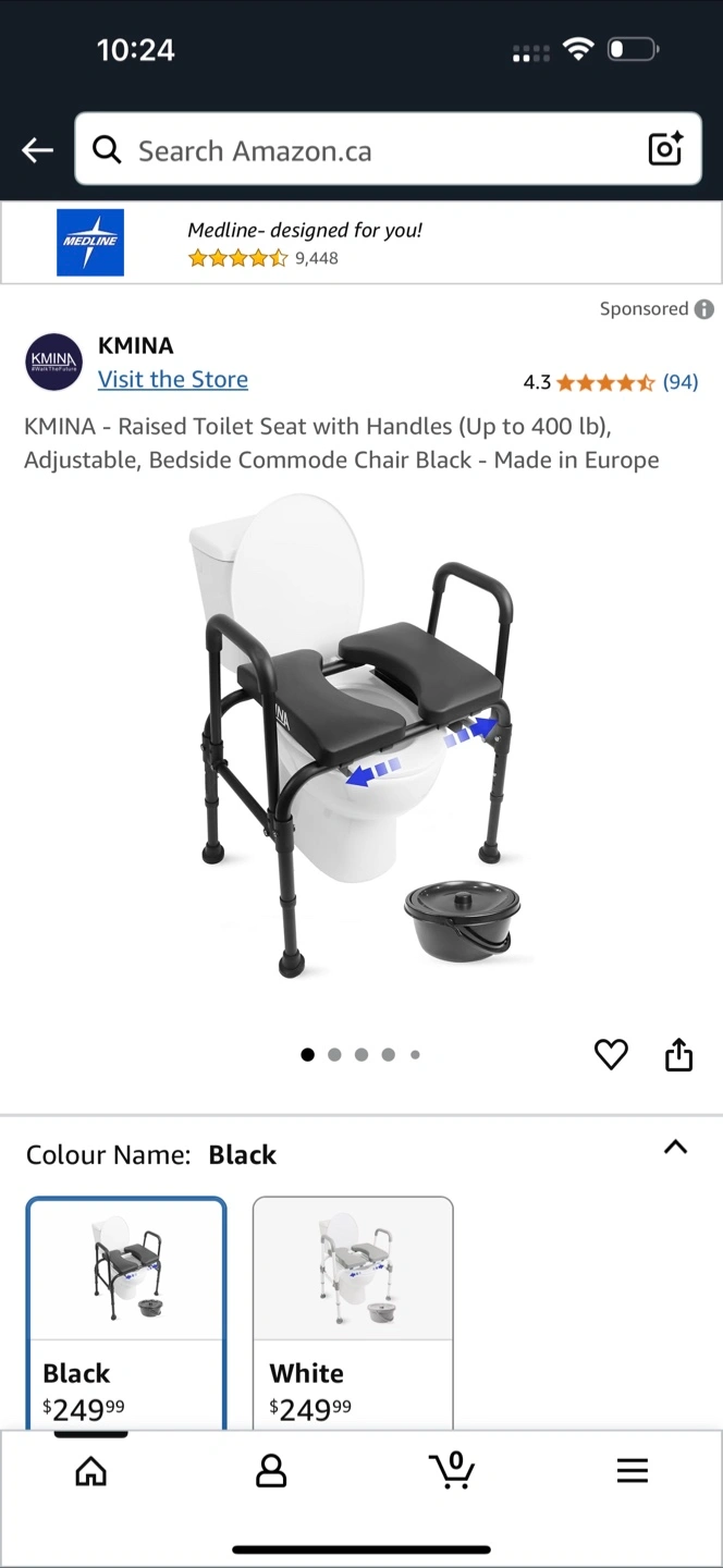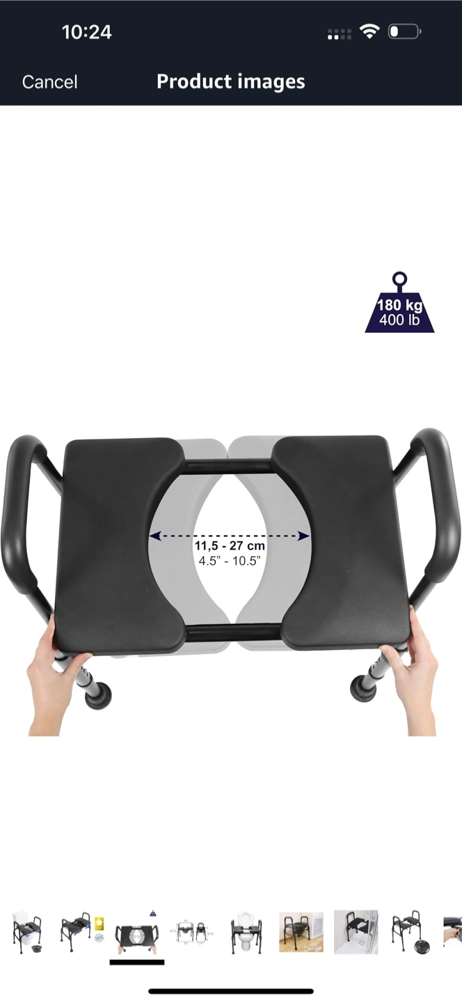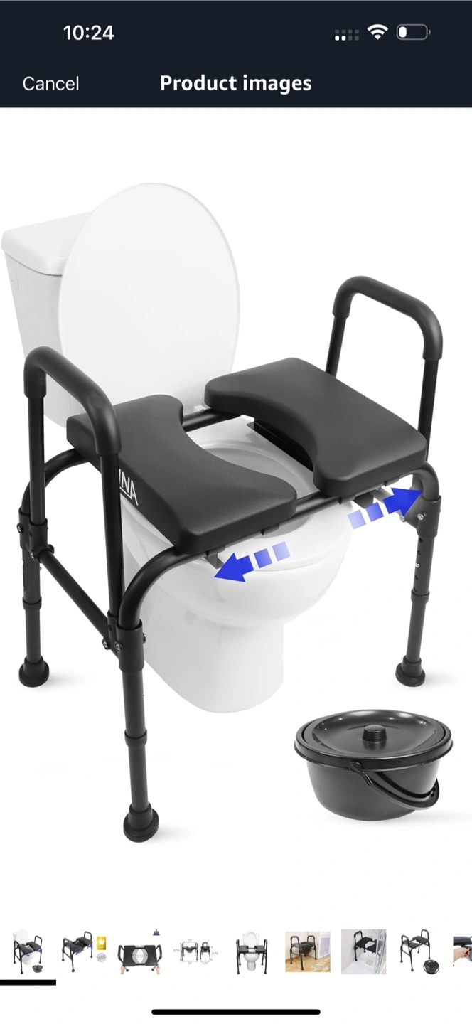 A commode style toilet seat with handles. Featuring a black colour and an adjustable design. You might find this can help to make those daily tasks more comfortable.