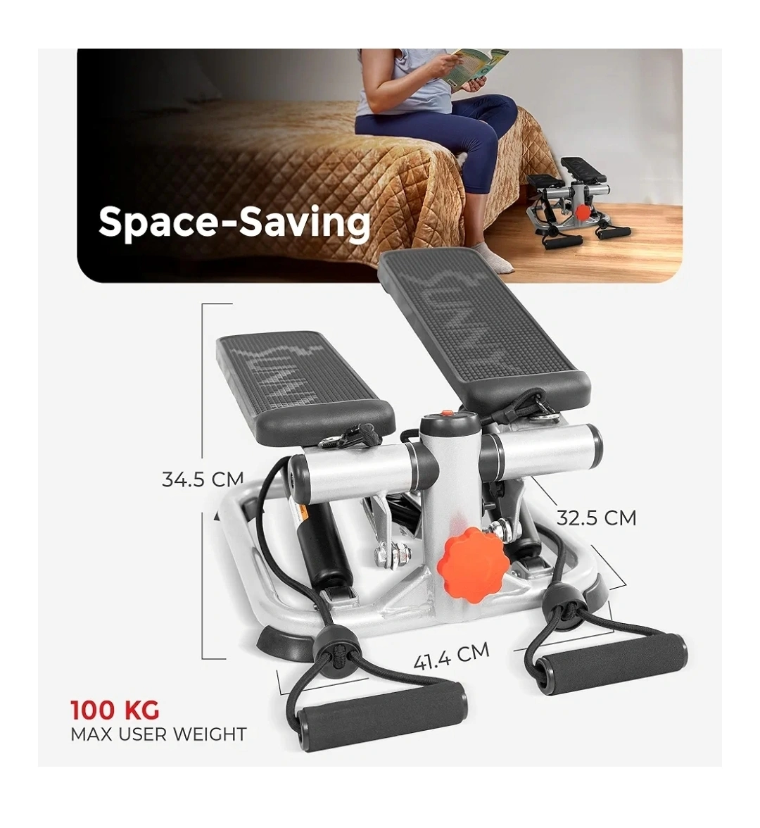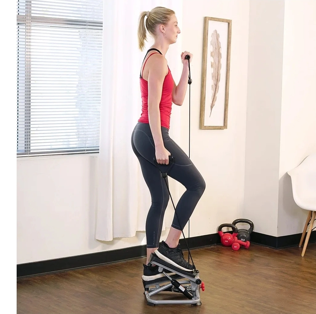 Compact and convenient mini stepper that takes up virtually no space! Perfect for maintaining fitness at home and easy to store away. I loved getting my workouts in while doing the dishes or watching a movie—burned over 500 calories per session with this beauty. We've since moved into a building with a gym, so it's ready to find a new athletic owner!