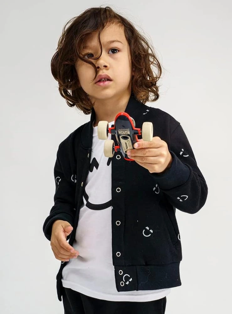 Black Bomber Jacket with Smiley Face Design