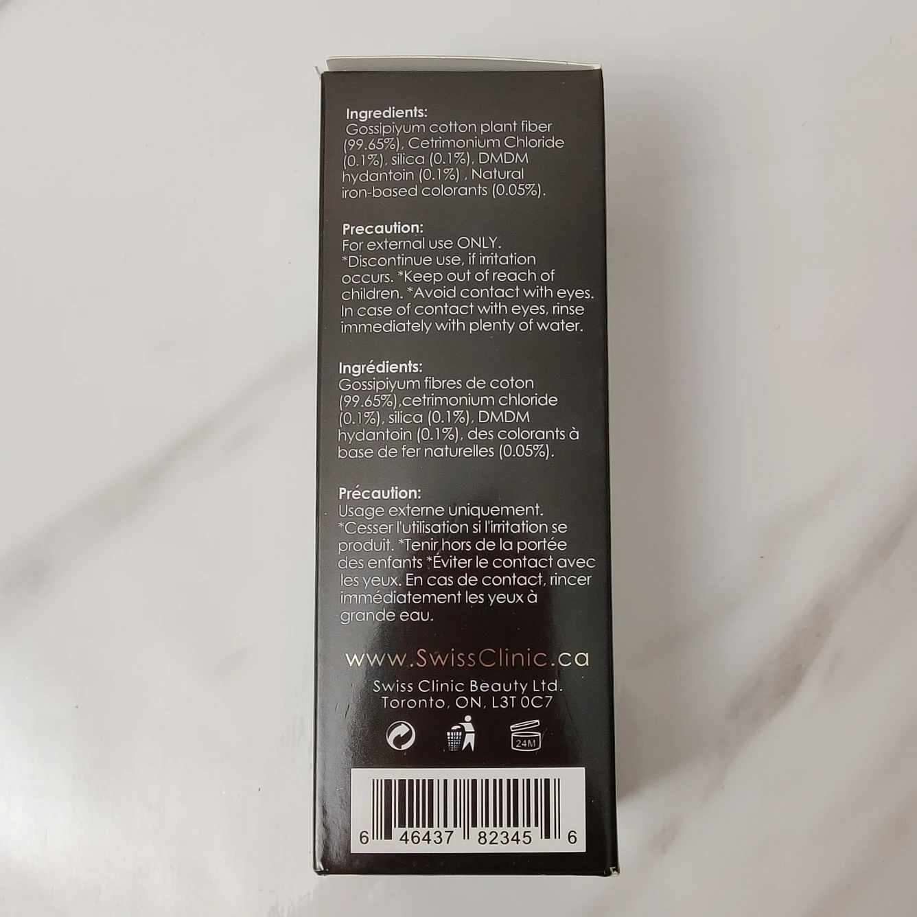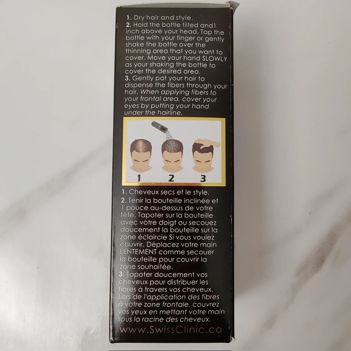 New Swiss Clinic Instant Hair Thickening Fiber Just put a little, will get Instantly fuller hair in less than a minute!! Size 25g Shade Dark Brown Store Price $50+tax pick up 16Ave/Yonge