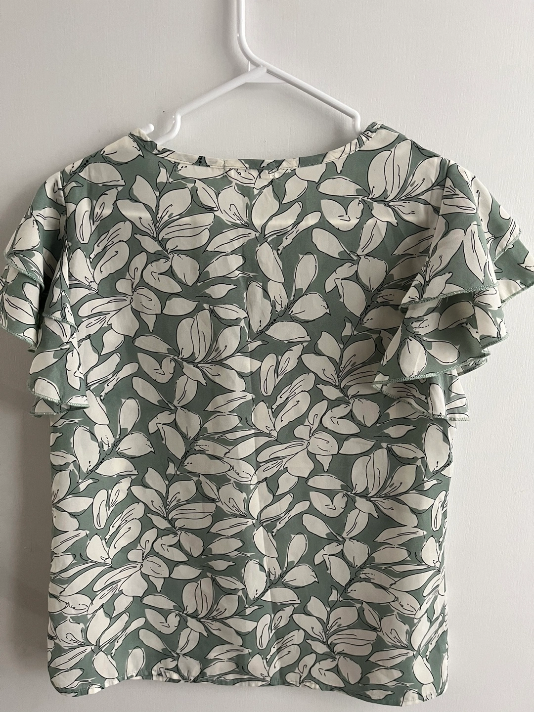 A beautiful top featuring a lovely floral print and ruffled sleeves. It has a simple round neckline and a keyhole detail at the front. This top would be perfect for a relaxing walk in the park.