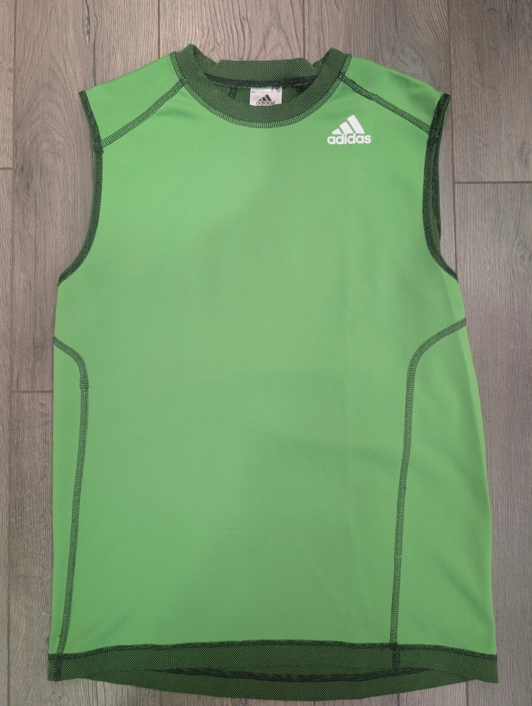 Very good used condition. Elevate your workout with this Adidas sleeveless shirt, designed for peak performance with its athletic fit. Though it's a used item, it maintains excellent condition, ready to support you through every rep and sprint.