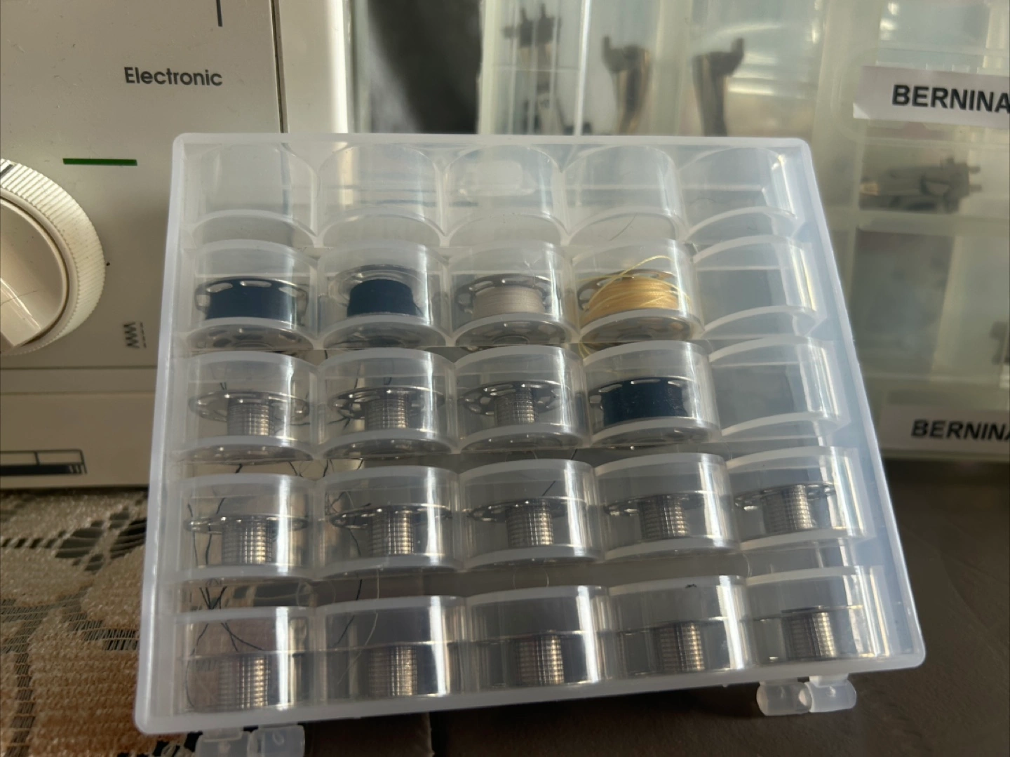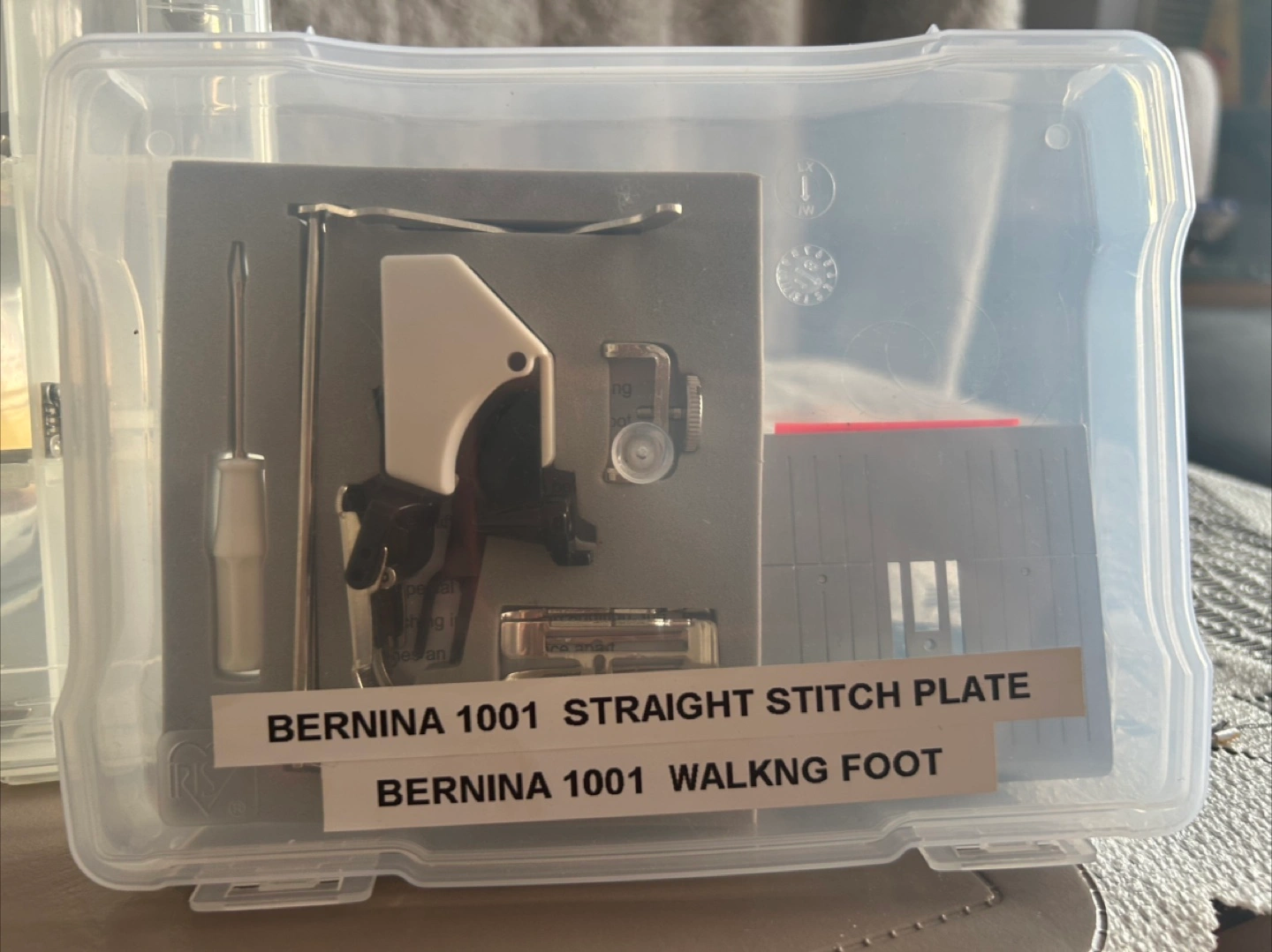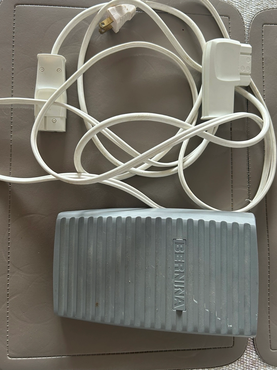 I am selling a sewing machine, along with many accessories. Sewing machine is white. Accessories include sewing feet, bobbins, and more. The machine has several knobs. It's a great item to inspire creativity, just imagine all the projects you could do.