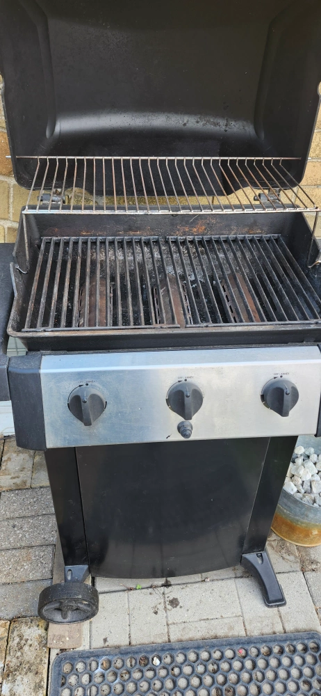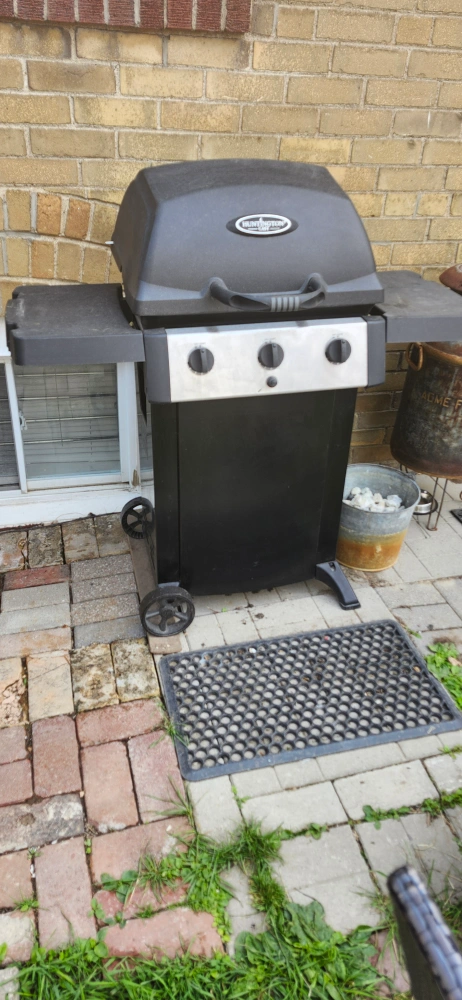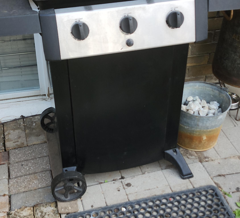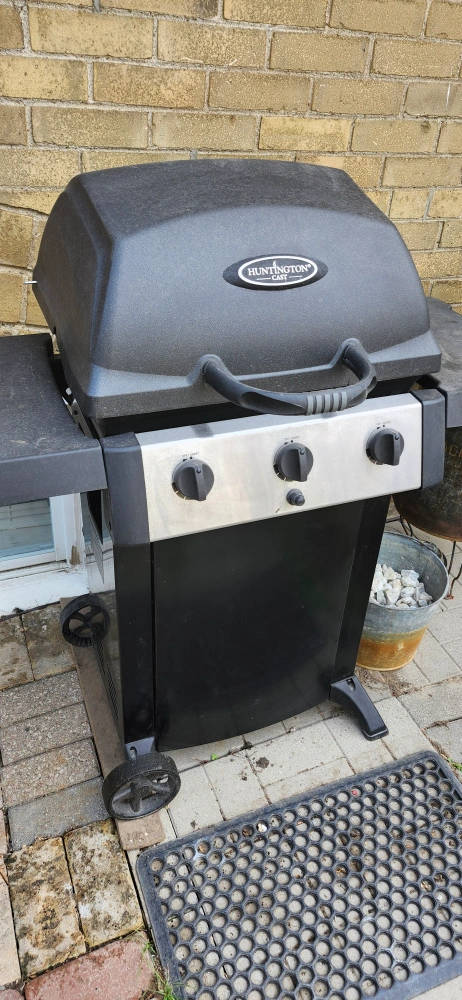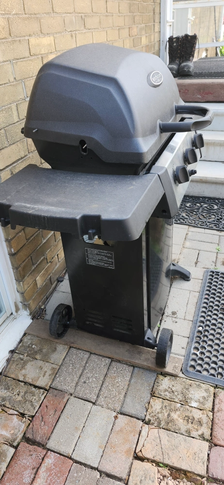 A propane BBQ grill. Features three burner controls on the front, with a lid and side shelf. Perfect for gathering with friends on a pleasant evening. Excellent working condition price only cash only pickup no delivery. 801 O'Connor drive outside TD Canada Trust bank door.