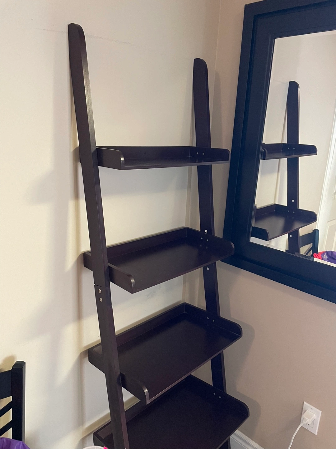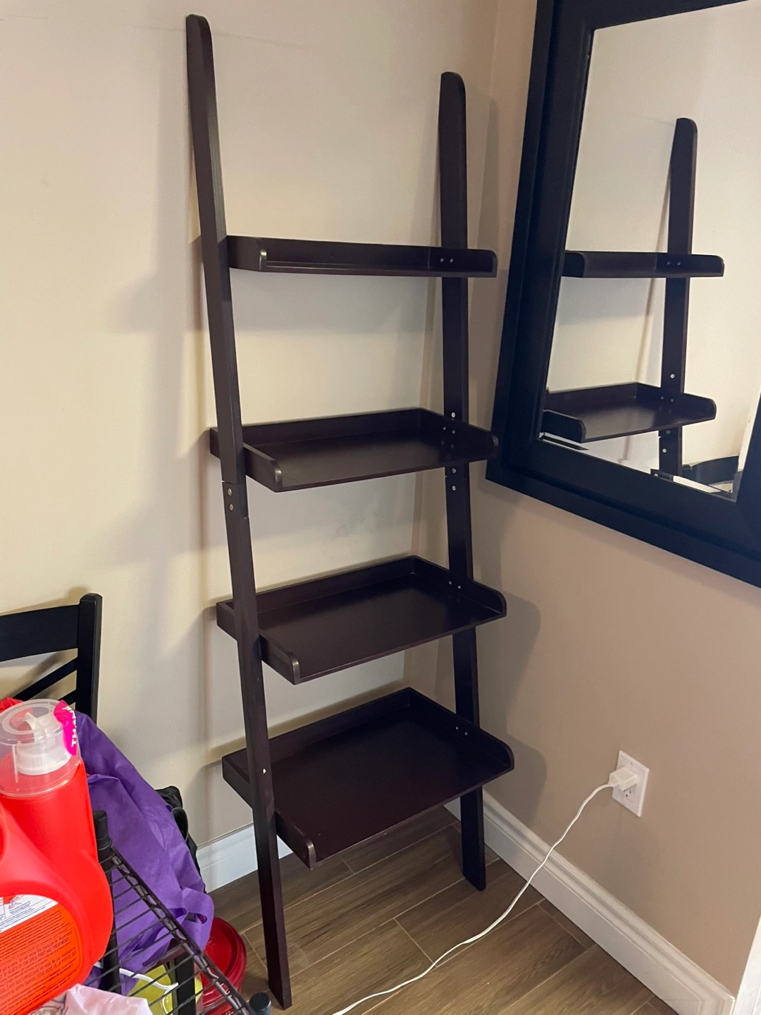 98Looking to downsize! Selling a stylish dark brown ladder shelf in good condition. It's perfect for displaying books, decor, or plants in any room. Dimensions: * Height: 69 inches * Width: 21.5 inches Grab this versatile storage solution today! Price: $30 Sold as is. Pick up only. Serious inquiries only, please!