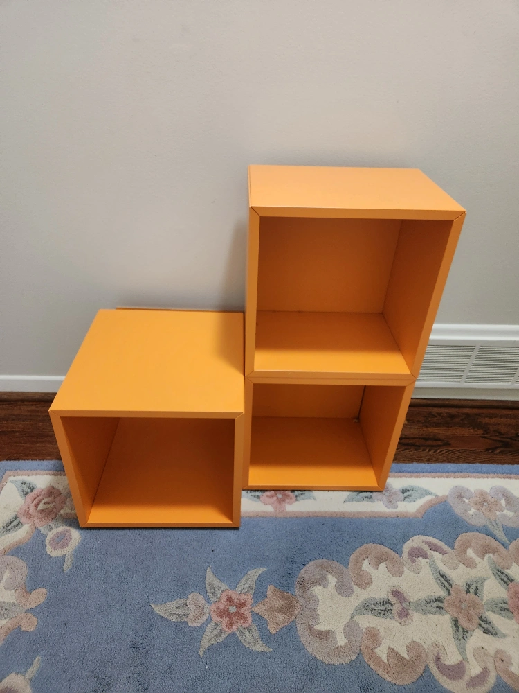 2 IKEA cubes, 35x 25x 35. altogether 11 cubes. On the pictures you will see 8 +3 cubes. Orange coloured, in excellent condition.