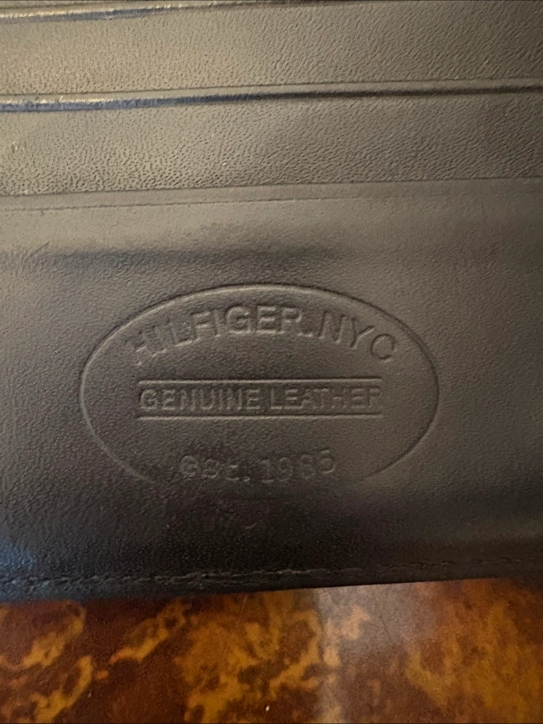 Black leather wallet. Features a zipper closure. Includes card slots. This wallet is a wonderful everyday carry item to organize your essentials calmly.