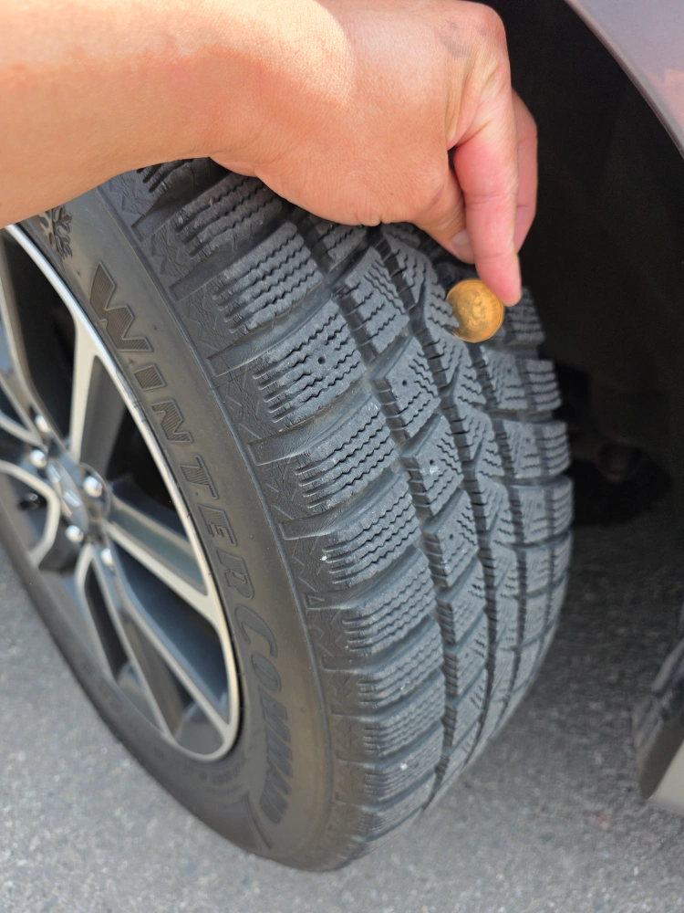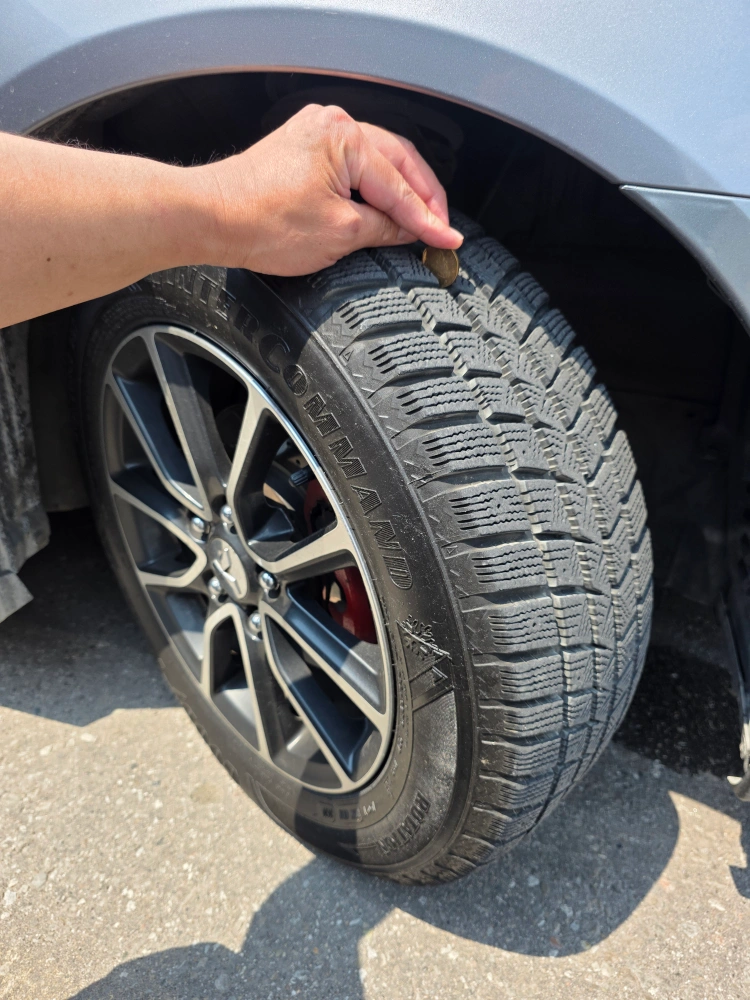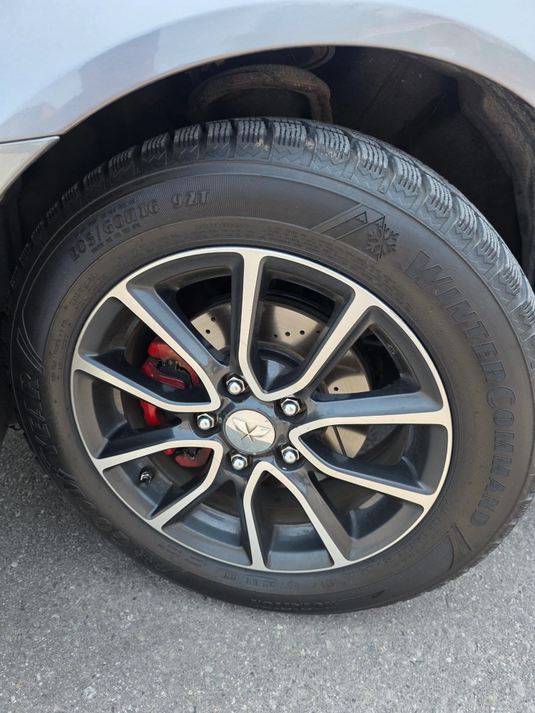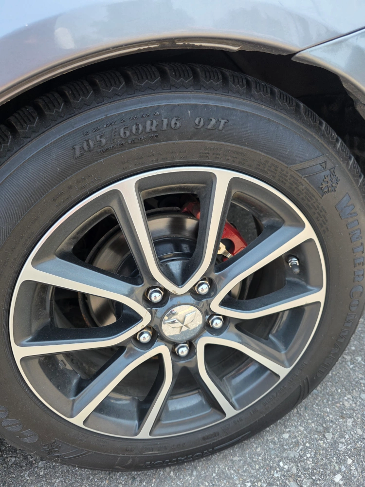 These tires and rims look great. The rims are two-tone with a cool star in the middle. These would be great to have during the winter months to keep you safe.