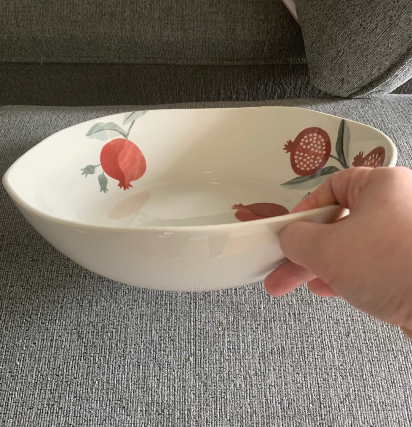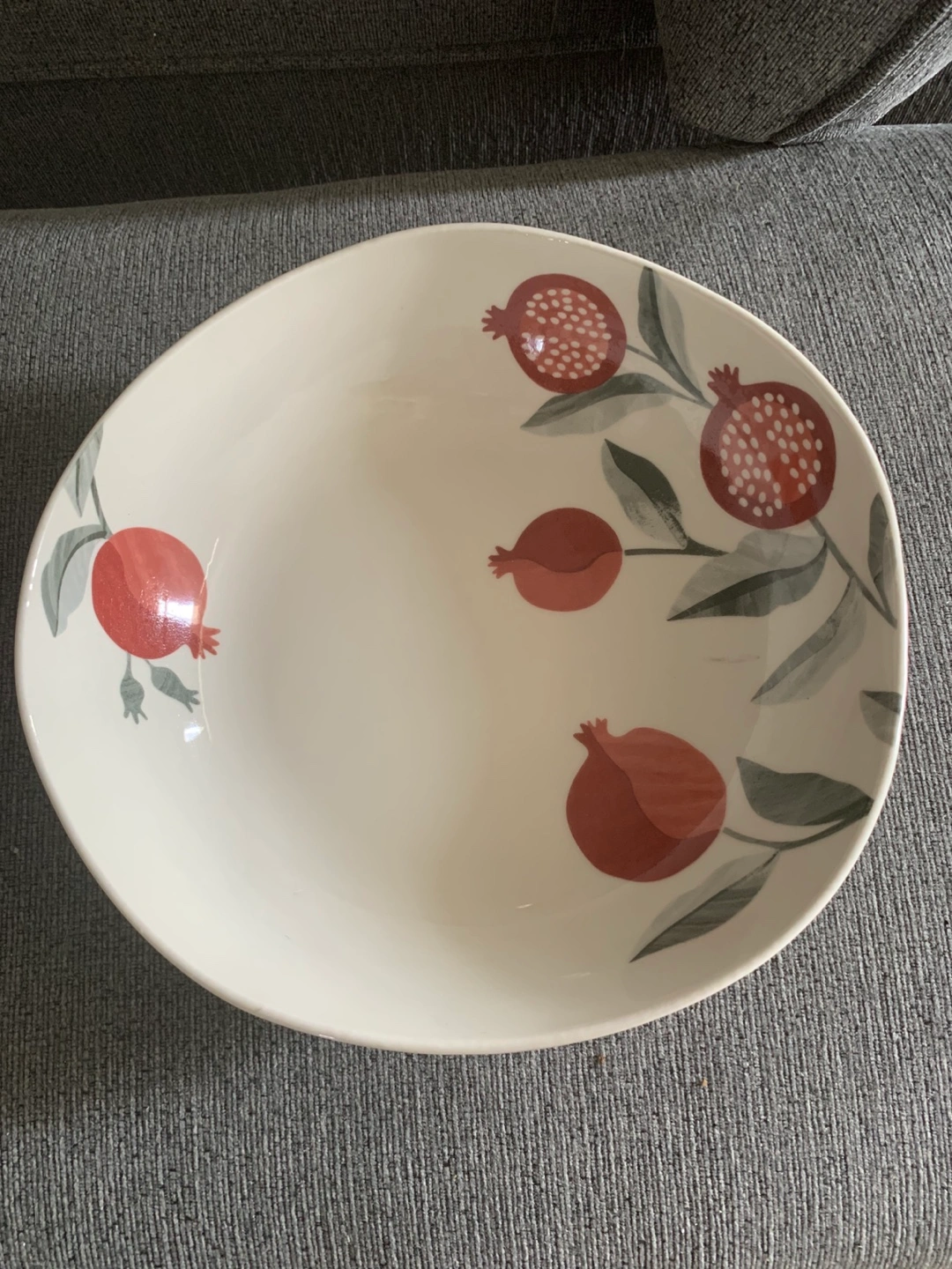 434-large serving bowl, originally purchased at Chapters -pomegranate design -those marks in the first pic are reflections of light, the bowl is new with no marks or scratches