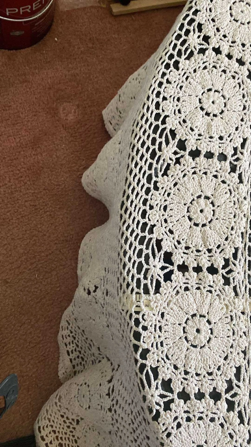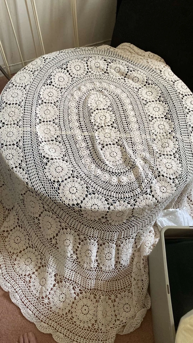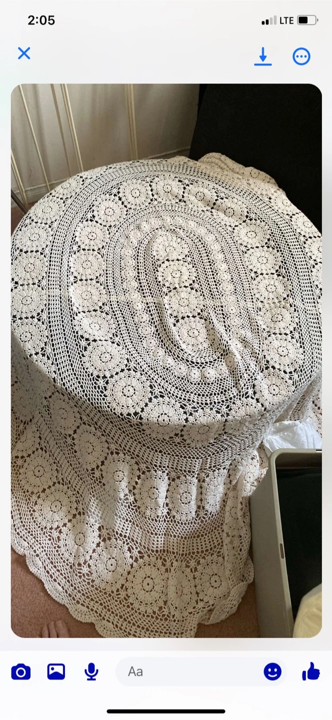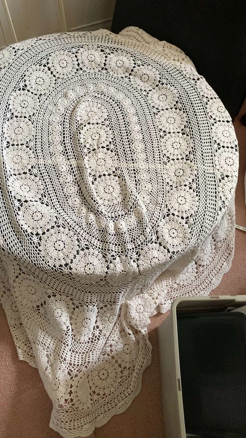Vintage Crochet Tablecloth. Size is 120 in x 78 approx