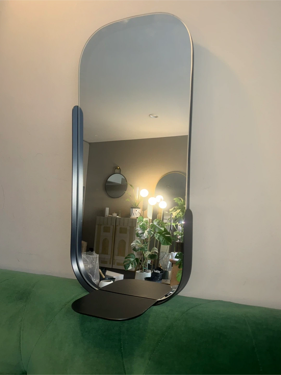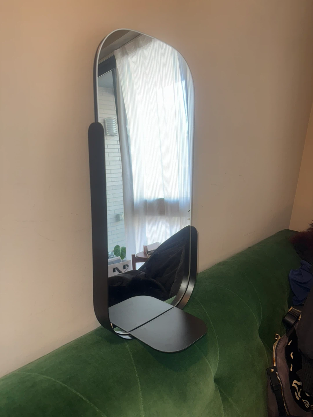 Brand New Hernest accent Wall Mirror, 24.8” H x 11.4” W x 4.7” D. Very nice contemporary room deco piece, Discontinued on their website. Brand new still in package, just need a bit assembling to attach the shelf unit. Pick up from midtown Manhattan Bryant park or queens Elmhurst.
