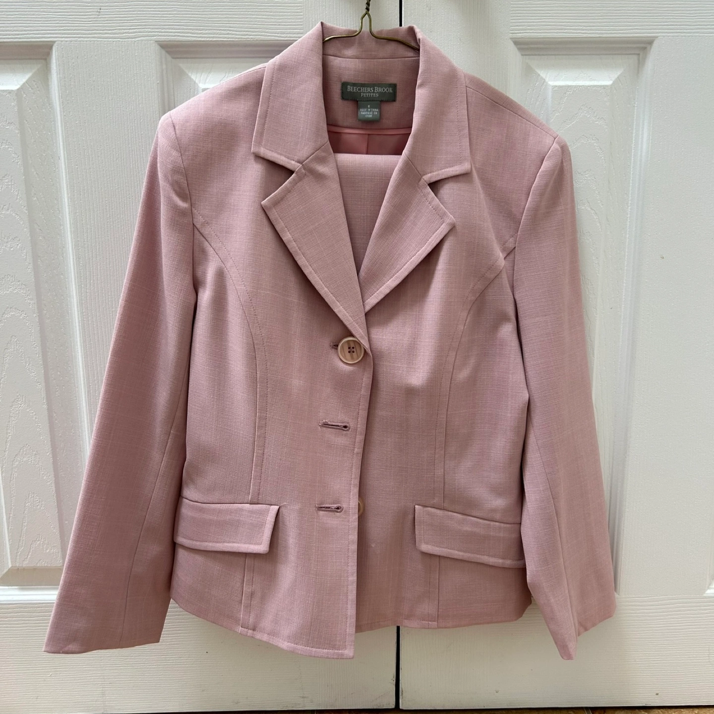 Pink Blazer and Skirt with Structured Shoulders, Size 6