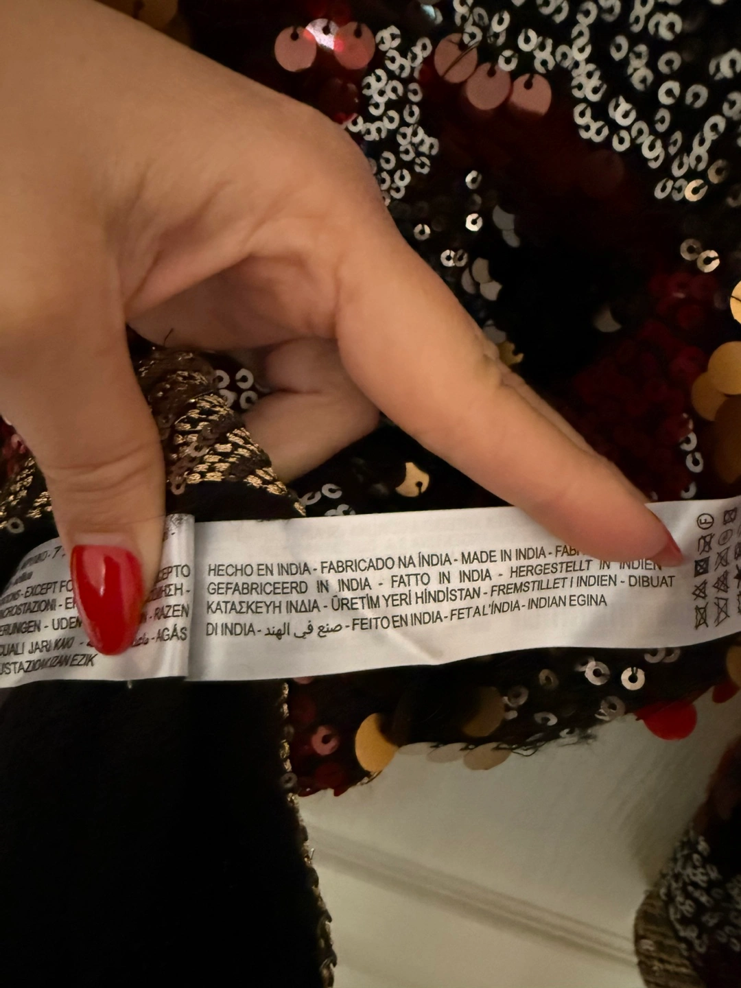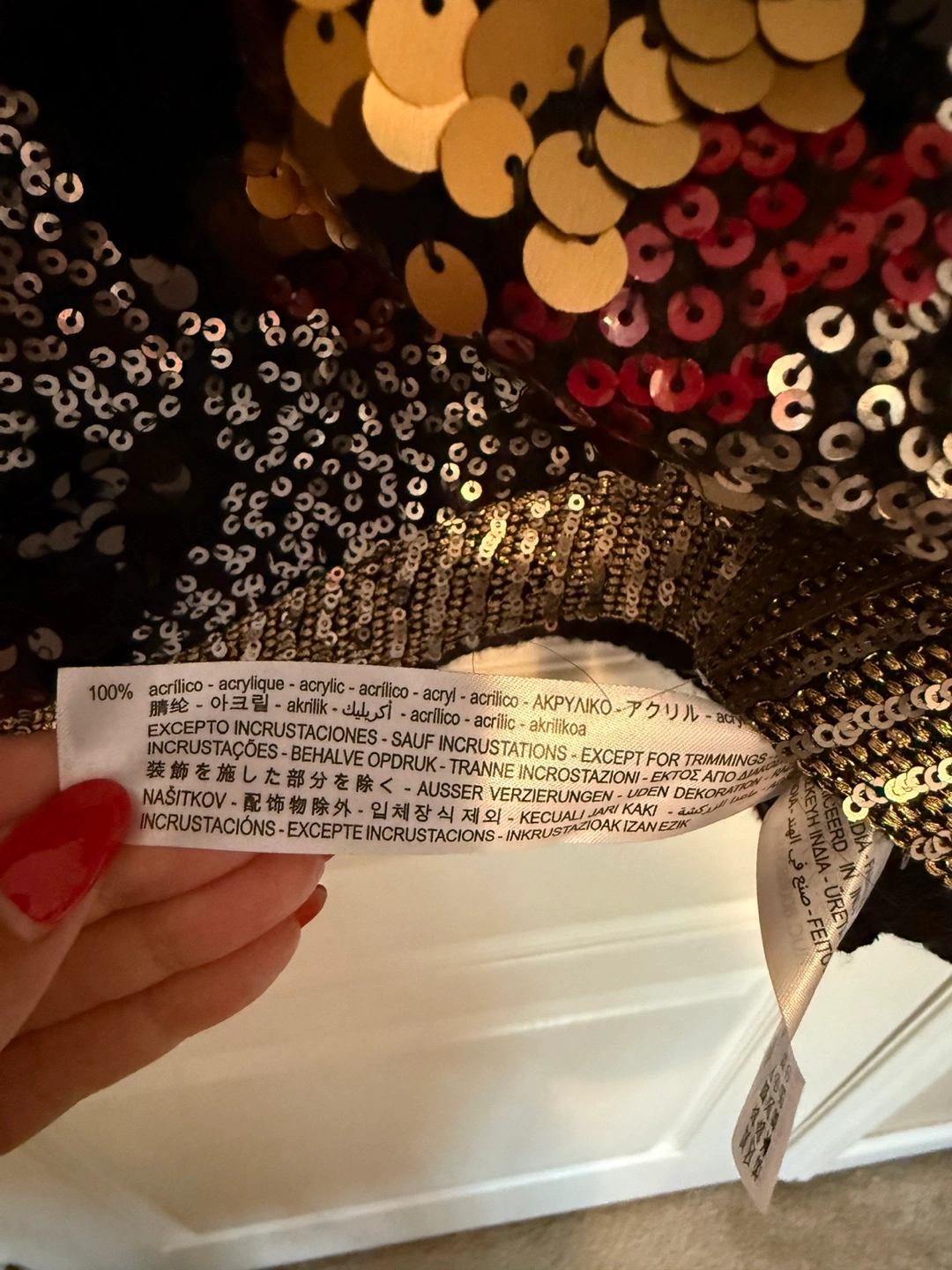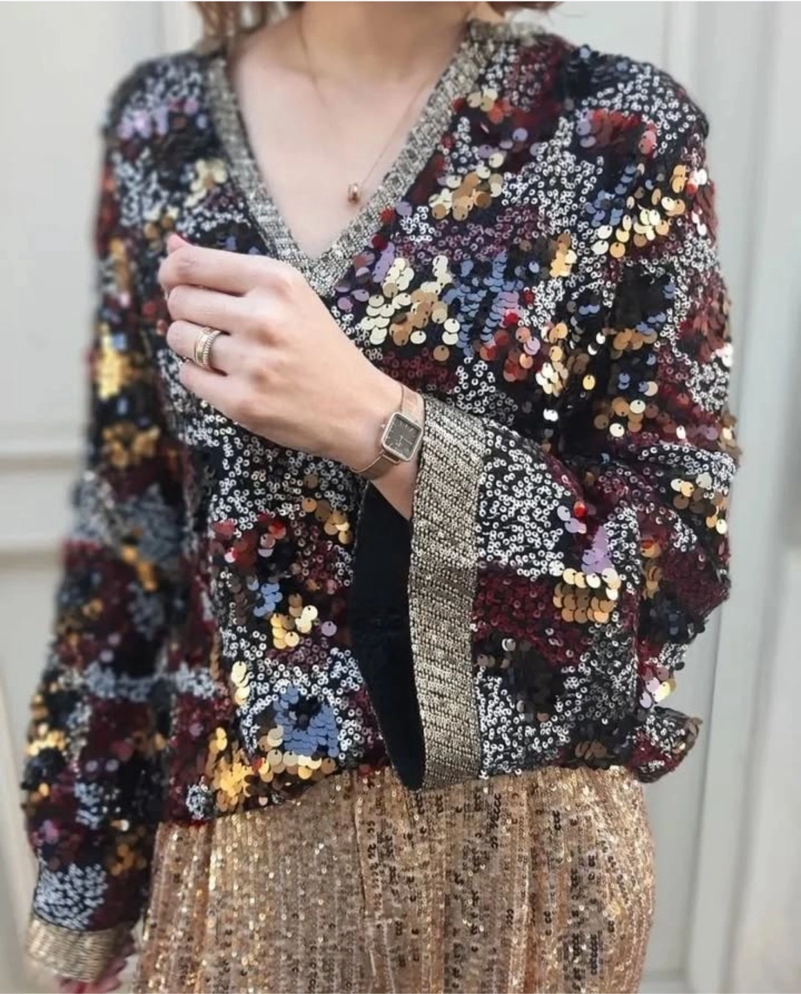 The sweater is embellished with a variety of sequins. Features a V-neckline with beaded trim. You will feel confident wearing this sweater.