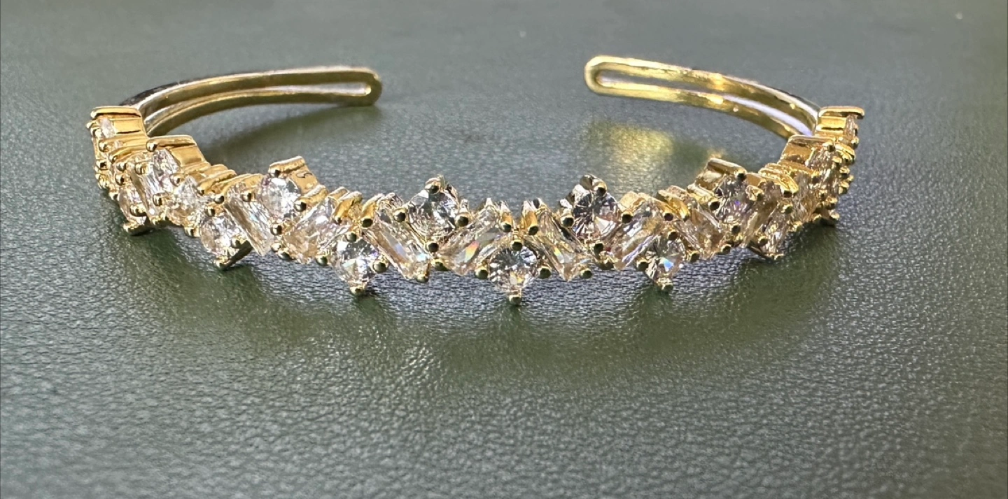 292Gold tone cuff bracelet. It features a row of shimmering cubic zirconia stones. An accessory like this is sure to elevate your everyday style.