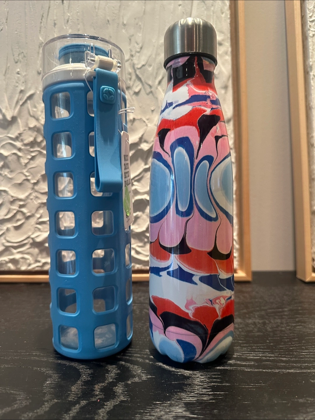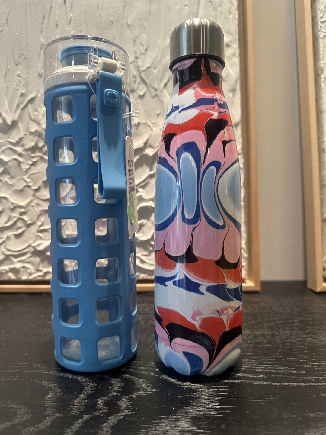 A pair of NEW water bottles.