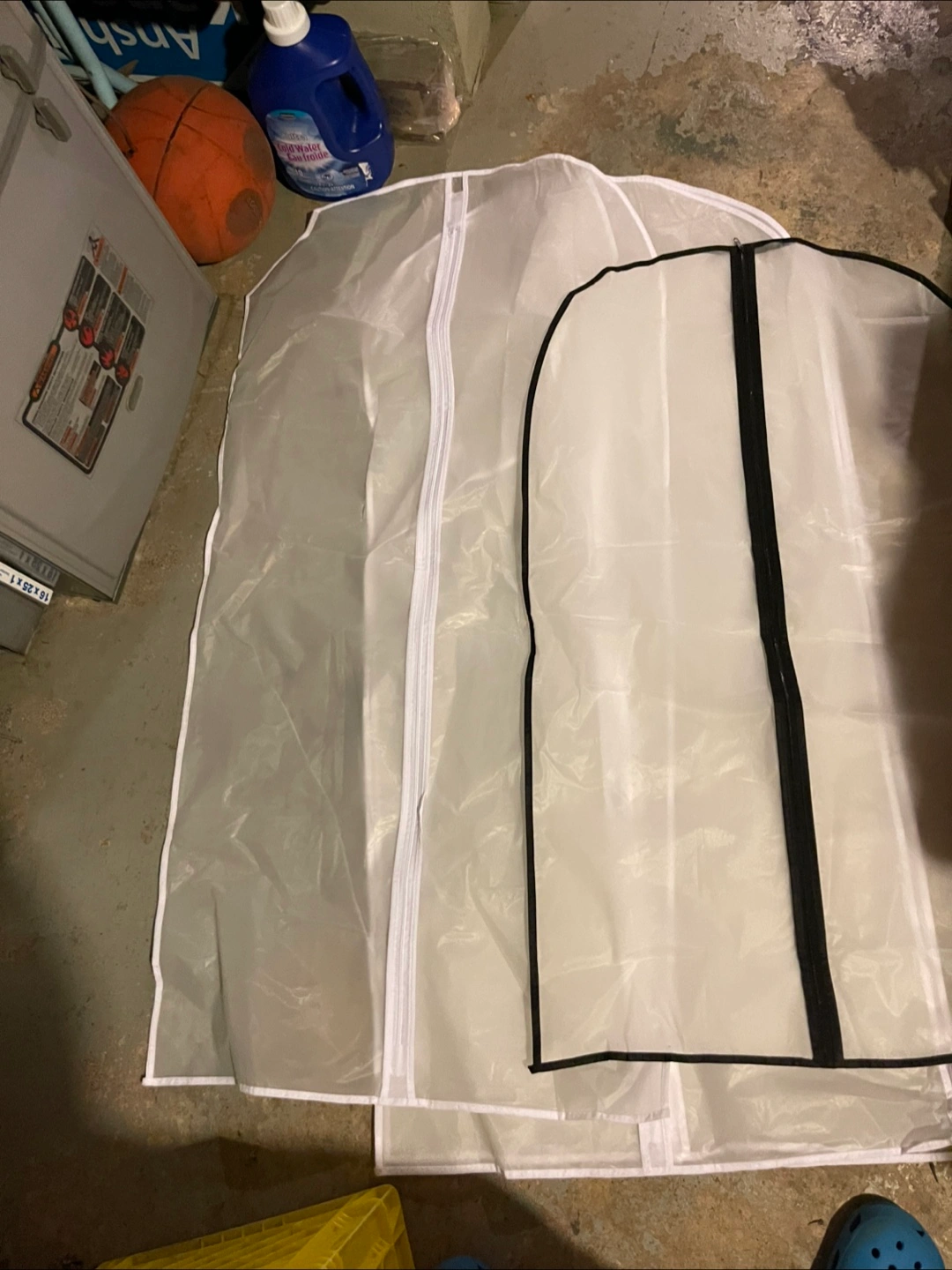 667Can be used to protect and store clothing. A perfect item to keep your favourite outfits safe and sound. 4 larger ones (behind the smaller one) 1 small one (black outline one on the front) $15 for all.