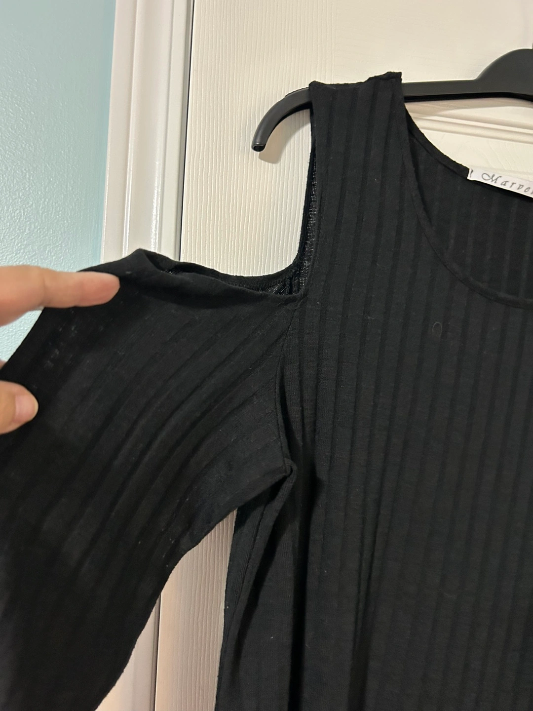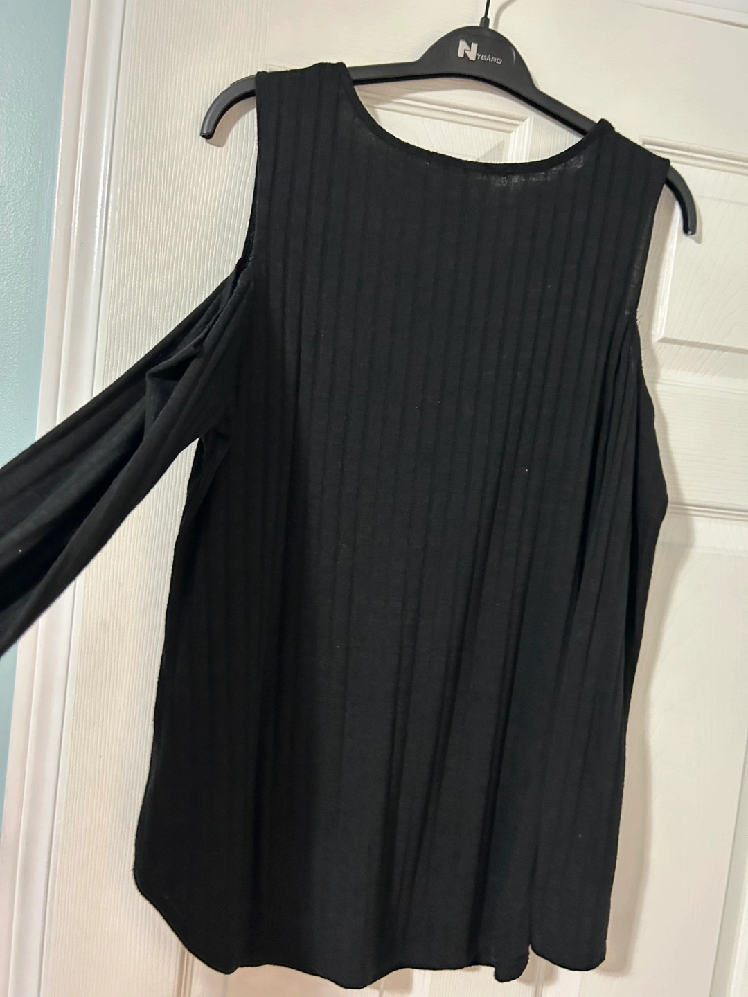 A lovely stretchy long-sleeved top. Features a ribbed design with stretch and open shoulder design.