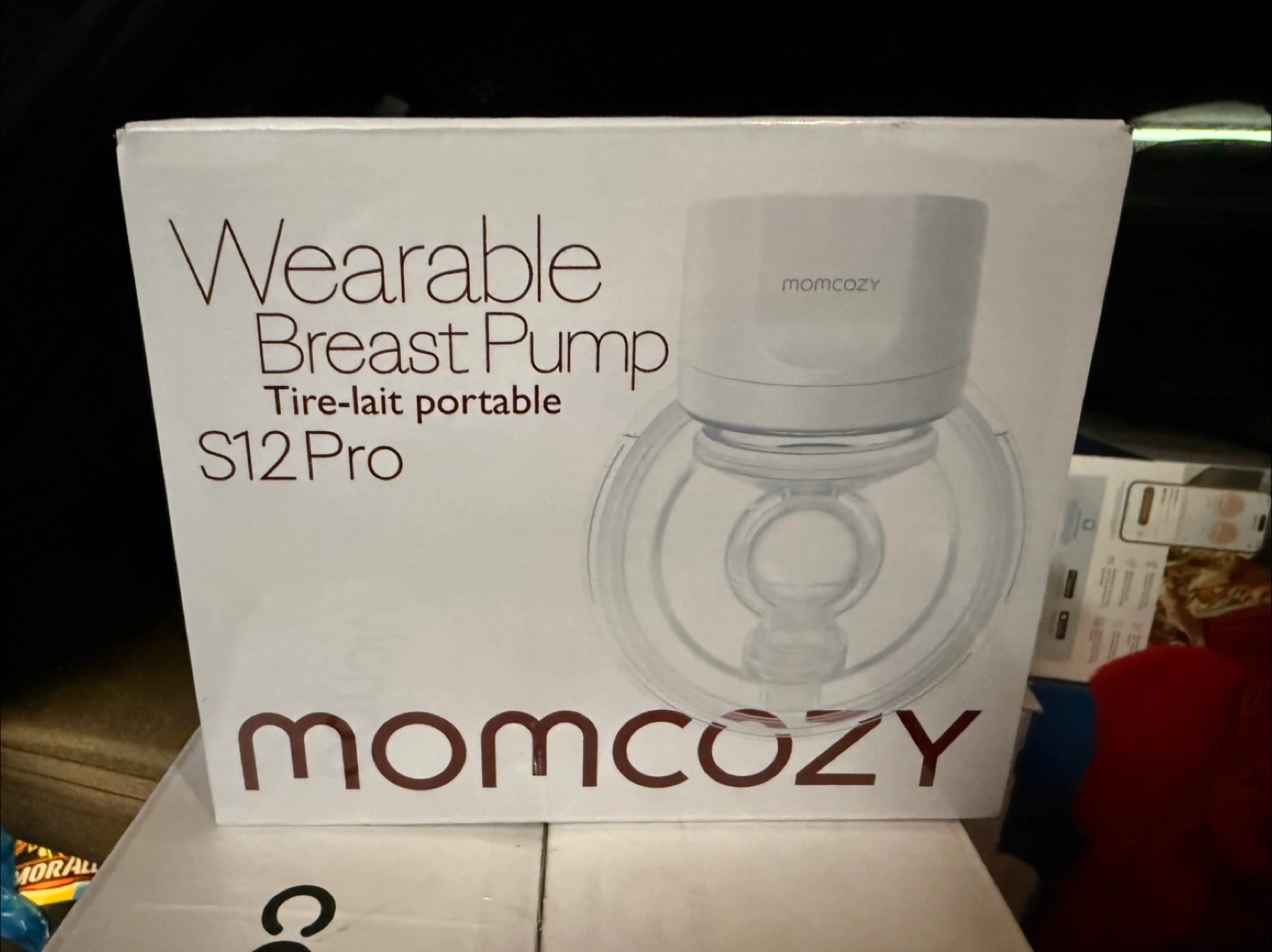 Wearable breast pump, S12 Pro model. White packaging with image of pump. A handy breast pump is a great addition for any mother, it can help you relax.