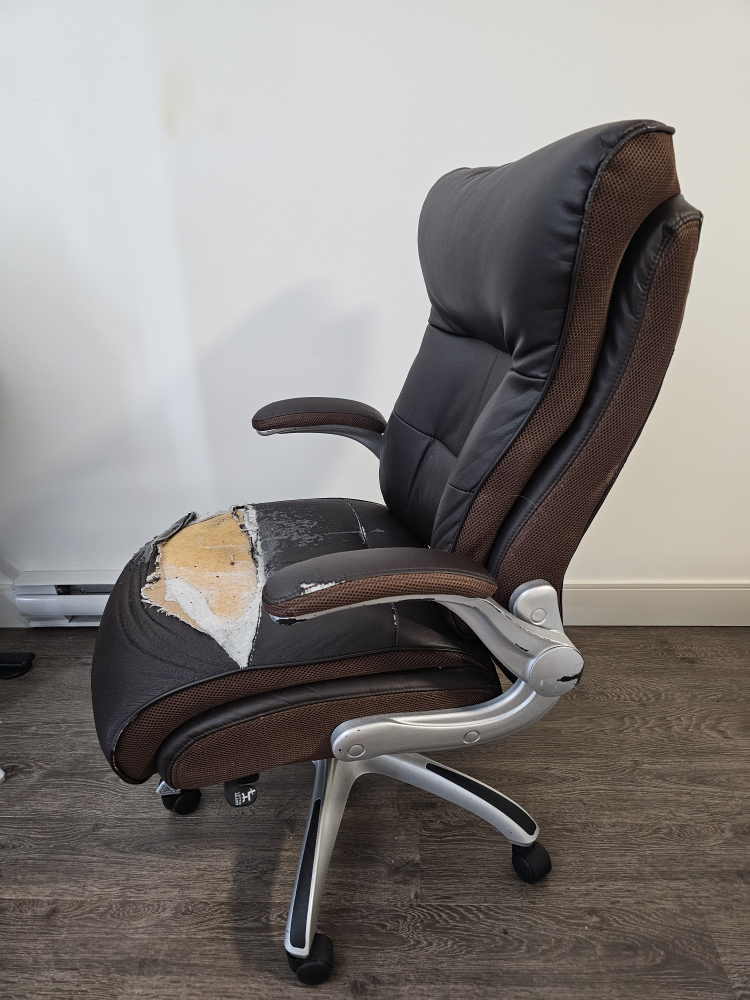 Office chair with the seat torn. If you can fix it, it's yours. Other features are in perfect condition. Just the seat torn. Pick up in coquitlam near lincoln station.