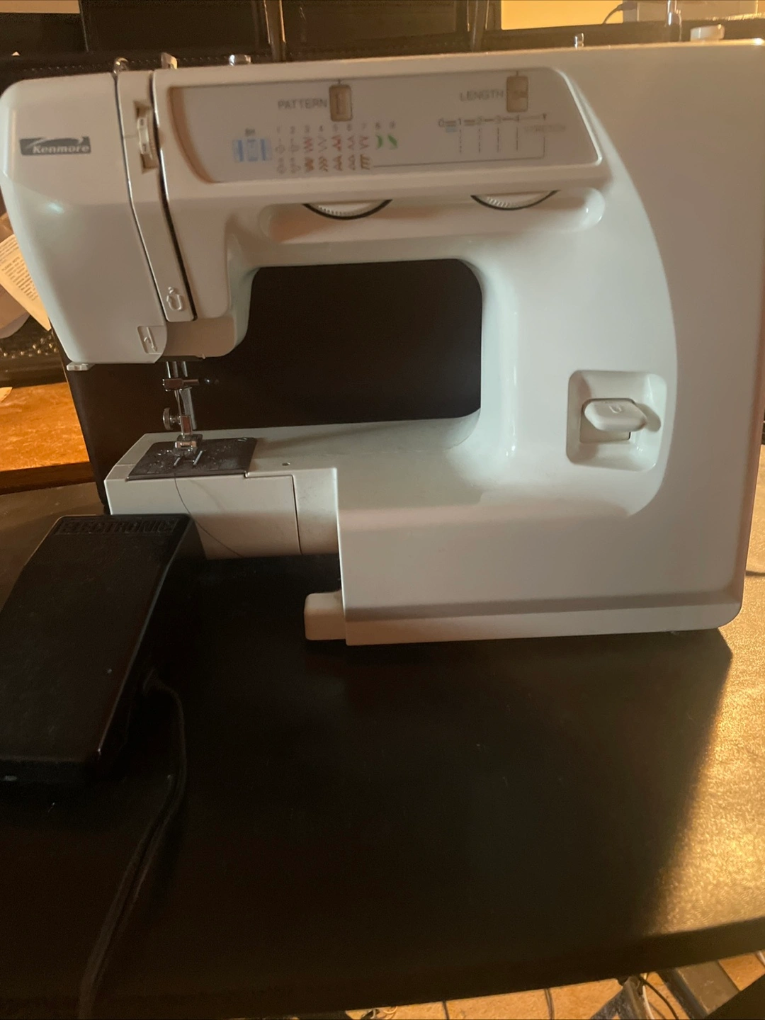 Vintage White sewing machine. Comes with a foot pedal. Features a pattern selection dial. Includes a monogrammer and pattern cams. Imagine the joy of making something wonderful with it. 2003 manufactured year. Lightly used for 5 months.