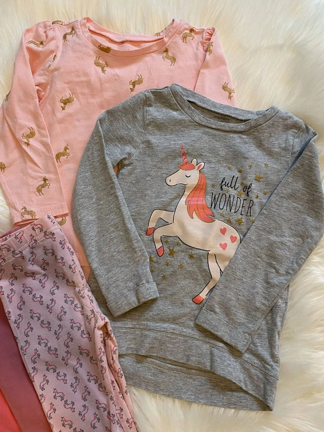 Adorable unicorn themed Bundle size 3T , “Simple Joy by Carter’s brand , all are in excellent jused condition no stains or any rips.