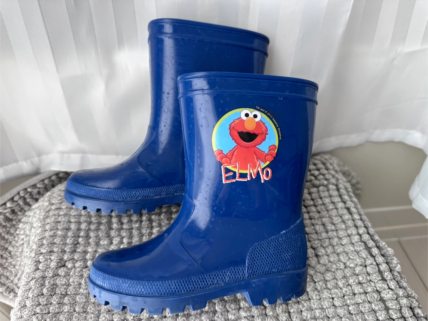 These boots feature a bright blue colour. An Elmo image is on the side of the boot. The soles feature a textured pattern. They are an excellent addition to your child's wardrobe to help them have fun while keeping their feet dry.