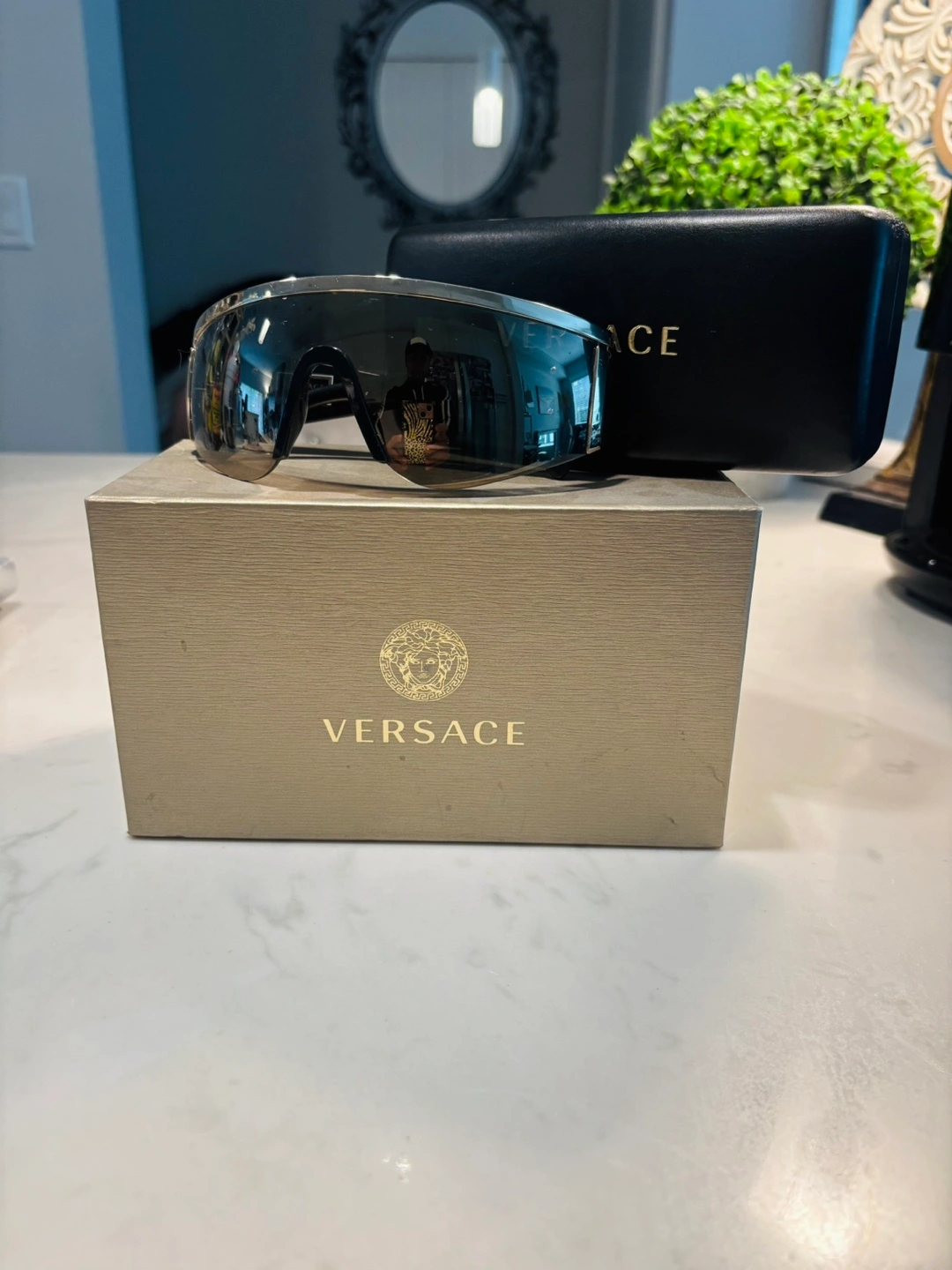 Buy & SellVersace SunglassesVersace Sunglasses$180versace Sunglasses with dark lenses. Gold detailing on the frame. Black case and box included.BrandVersaceWHERE TO MEETCheck LocationView MapSELLERisaacGrandview544 reviews1 chats·0 favorites·32 views