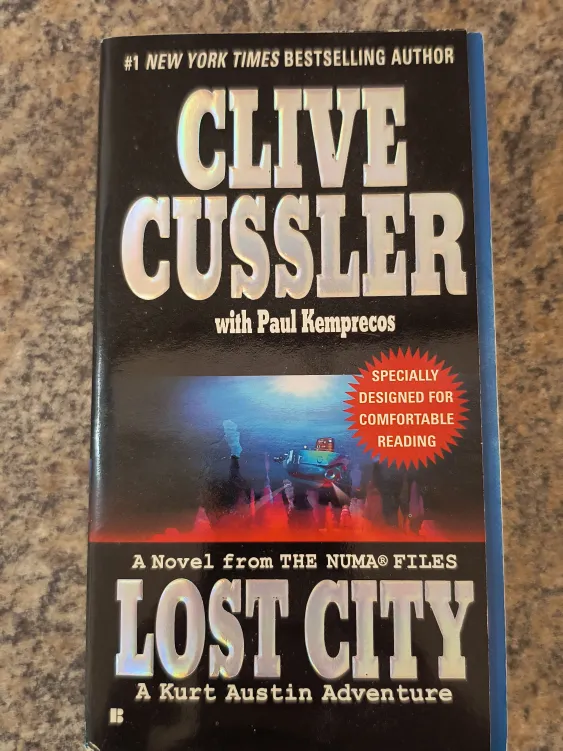 Clive Cussler's novel. Features the title 'Lost City'. A Kurt Austin Adventure. A great read while drinking a cup of tea.