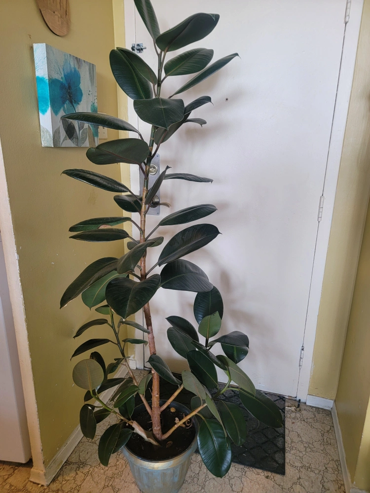 I'm selling a tall rubber plant. The plant has large, glossy leaves. It's in a pot. It would look great in a living room to enhance your home's natural aesthetic. I'm moving so I cant take her with me