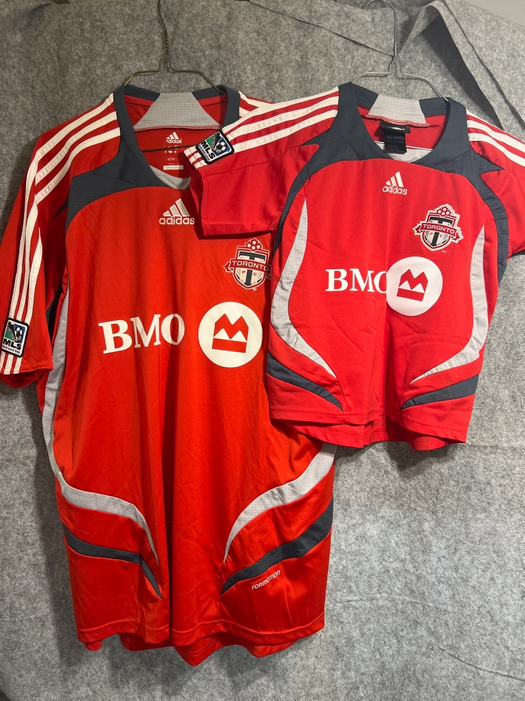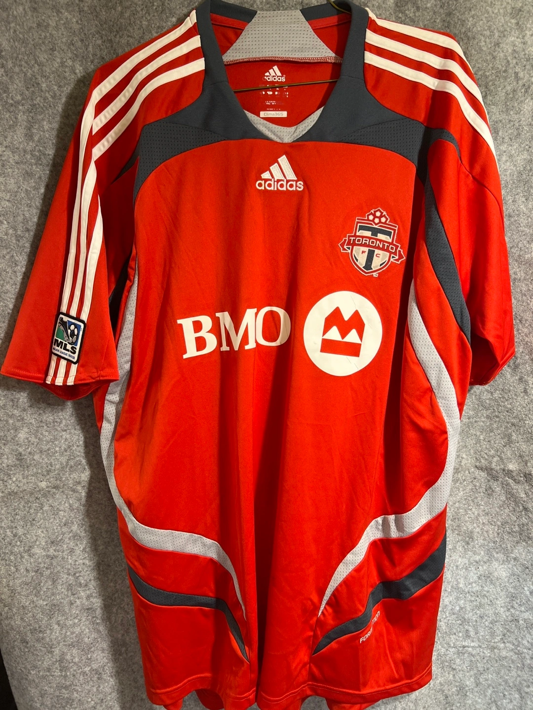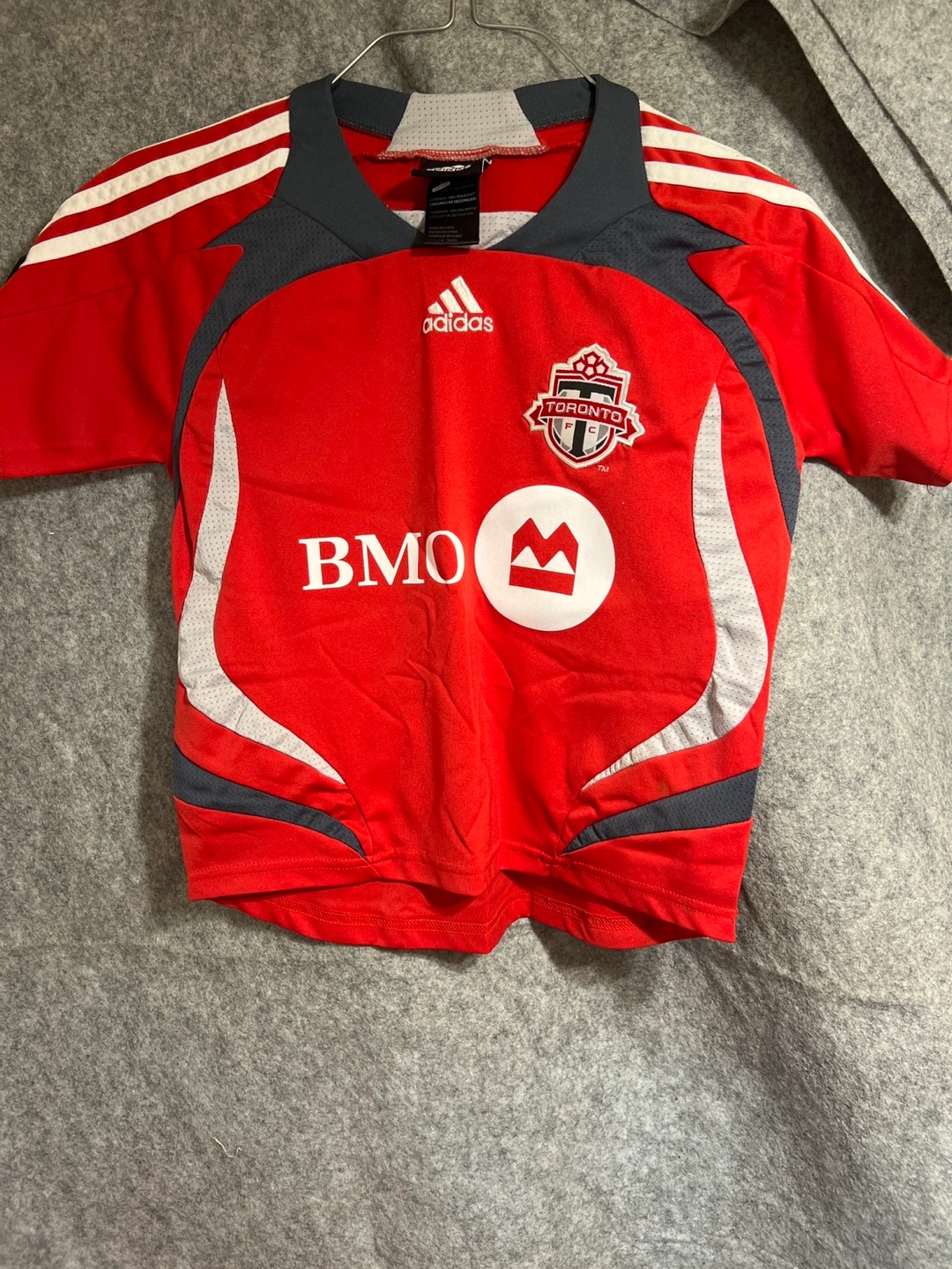 1000+Jerseys in red. Some feature white stripes. The front features a team logo and a BMO logo. It’s the perfect attire to unwind and watch a game with friends.