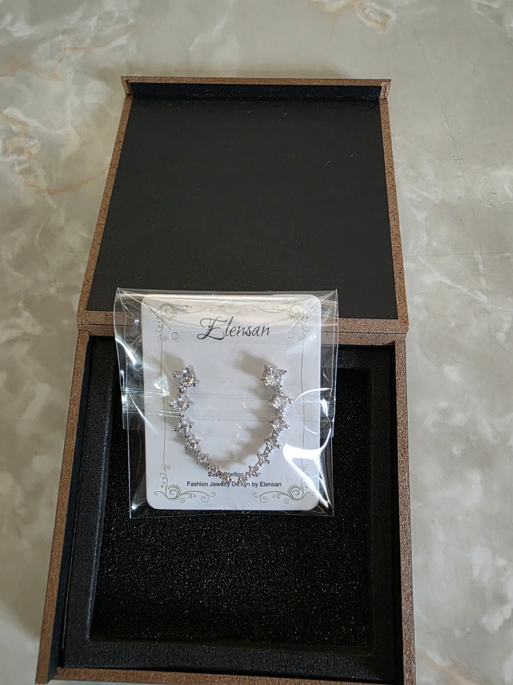 Elegant earrings. Come in a beautiful box. They would be a stunning addition to any outfit, perfect for a relaxing night out.