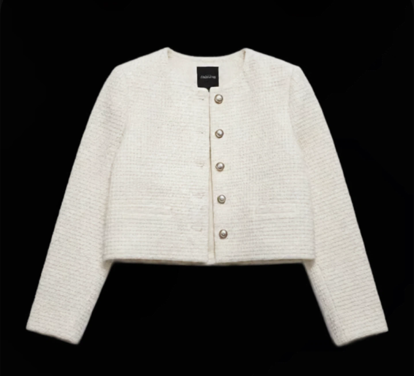 Brand New This Dynamite "Margot" jacket is a stylish collarless short design in Snow White. It's a size XXS with pearl and gold button details. This jacket is perfect for dressing up an outfit for a special occasion!