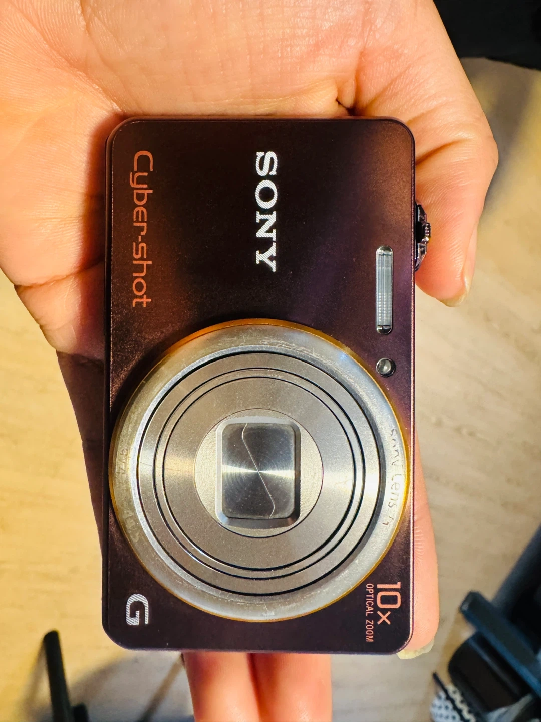 This is a Sony Cyber-shot digital camera. It has 18.2 megapixels and 10x optical zoom. The camera records in HD AVCHD.