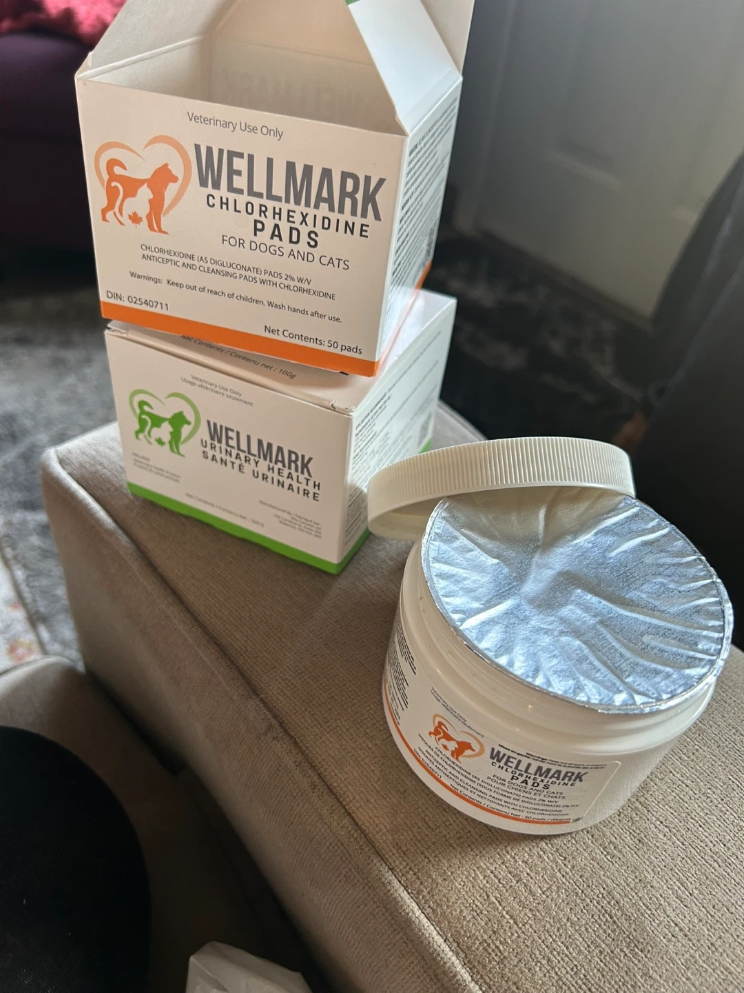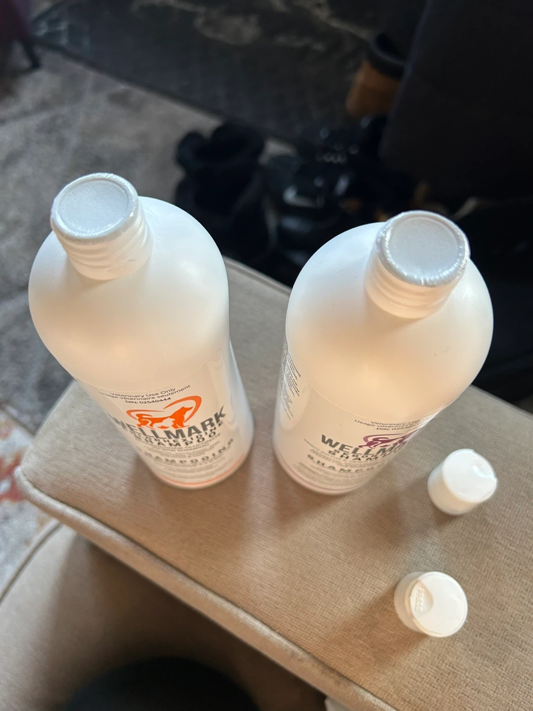 This bundle includes WellMark Sebhorrea Shampoo and WellMark Chlorhexidine Spray, both for veterinary use on dogs and cats. The shampoo is antiseptic, antifungal, and antibacterial. The spray contains 2% chlorhexidine.