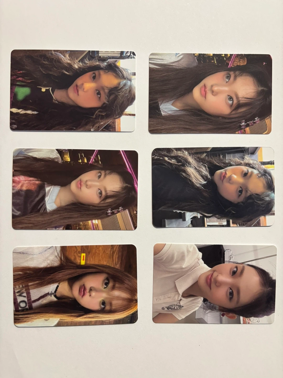 Set of six NewJeans Haerin photocards. Features images of Haerin on the front and handwritten messages on the back. Perfect for fans of NewJeans! 18 dollars for all 6, 4 for a specific one!
