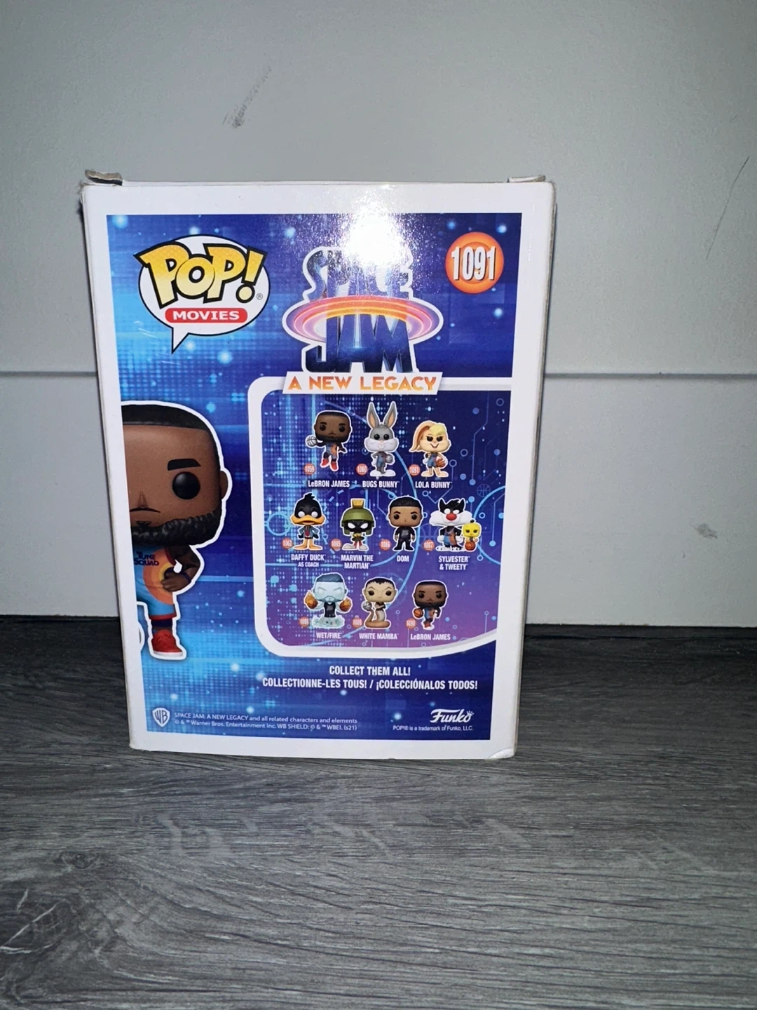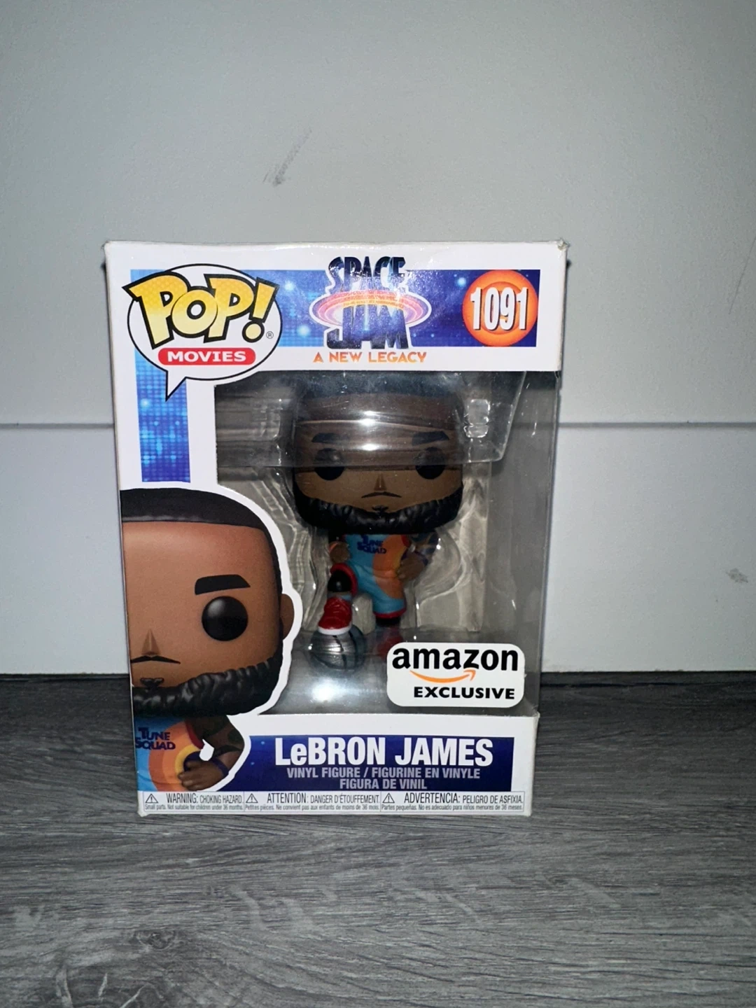Selling a Funko Pop! figure of LeBron James from Space Jam: A New Legacy. It's number 1091 in the series. The box is included, but it does show some signs of wear.