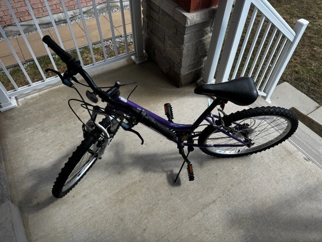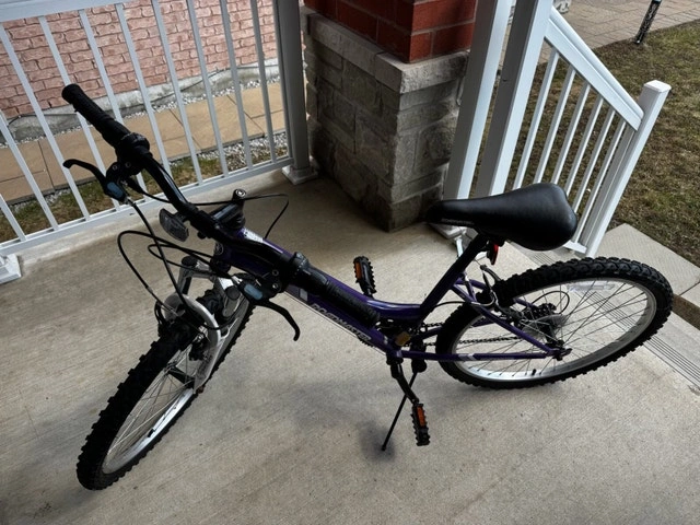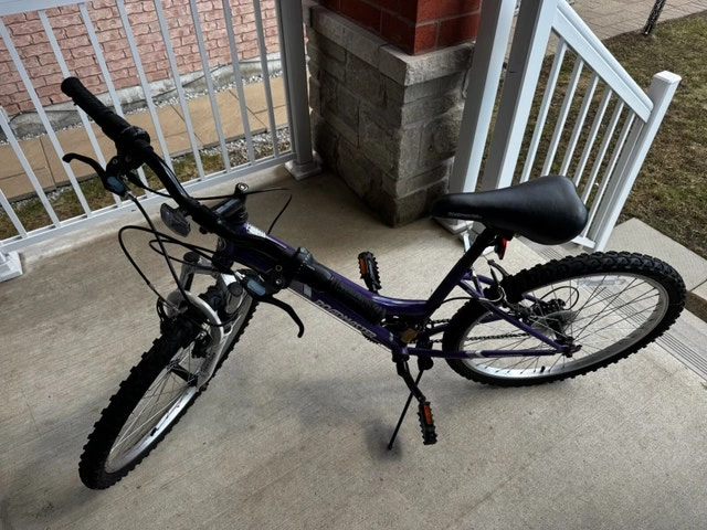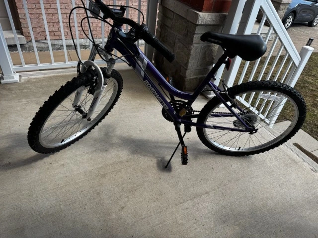 This Roadmaster mountain bike is perfect for leisurely rides, featuring a sturdy frame and comfortable seat. This bike is used and has some cosmetic wear, but it is still in good working condition, ready for trails or city streets. Frame Size: Medium, Wheel Size: 24 inches.