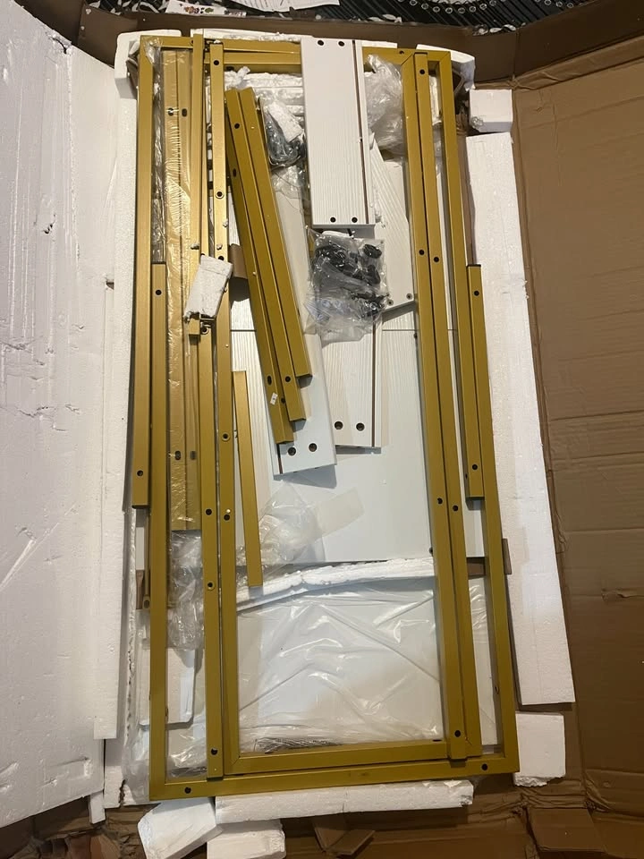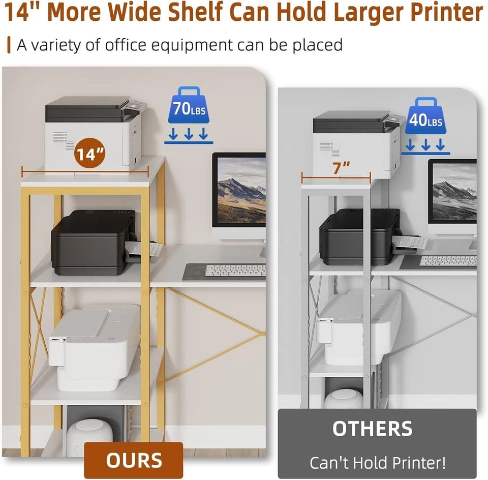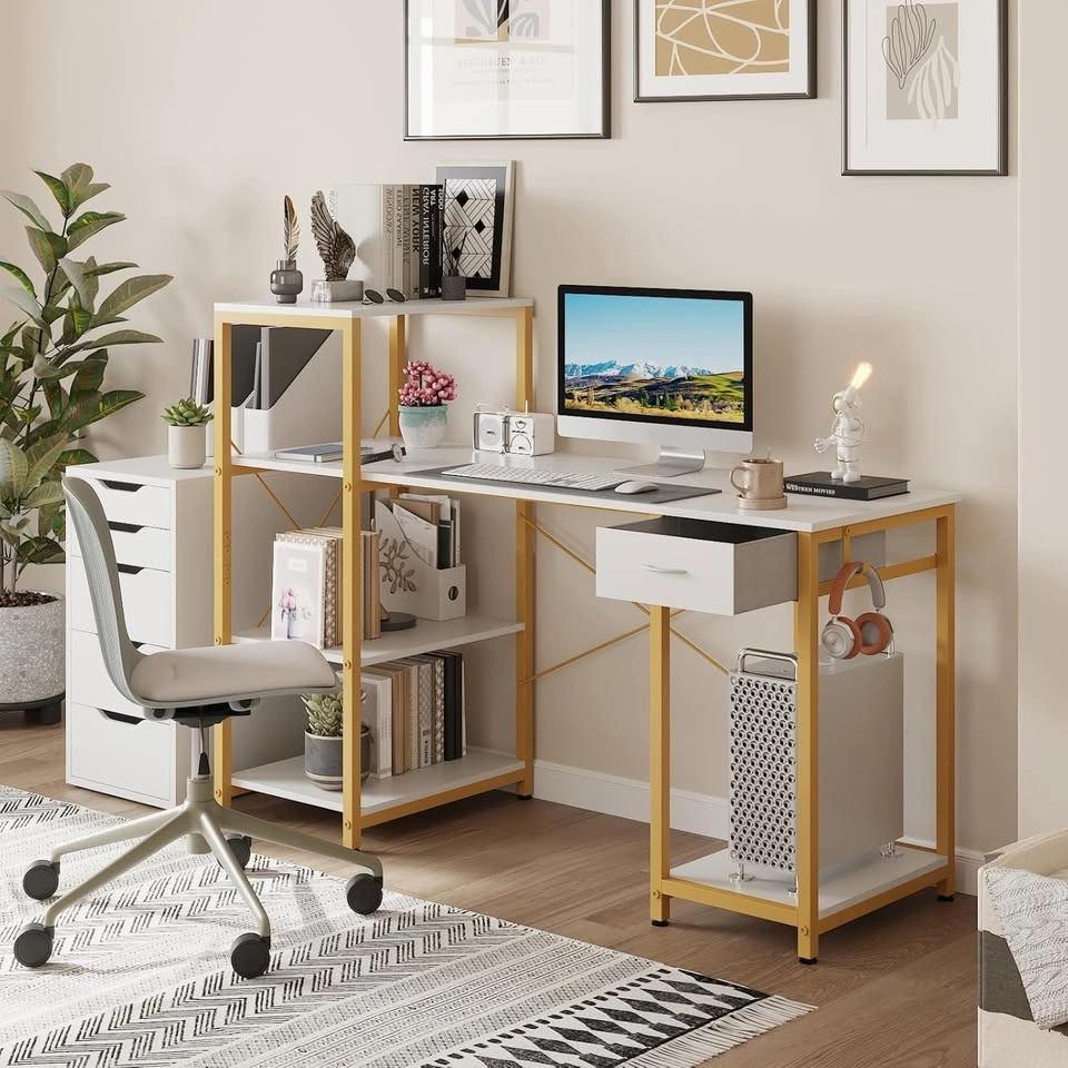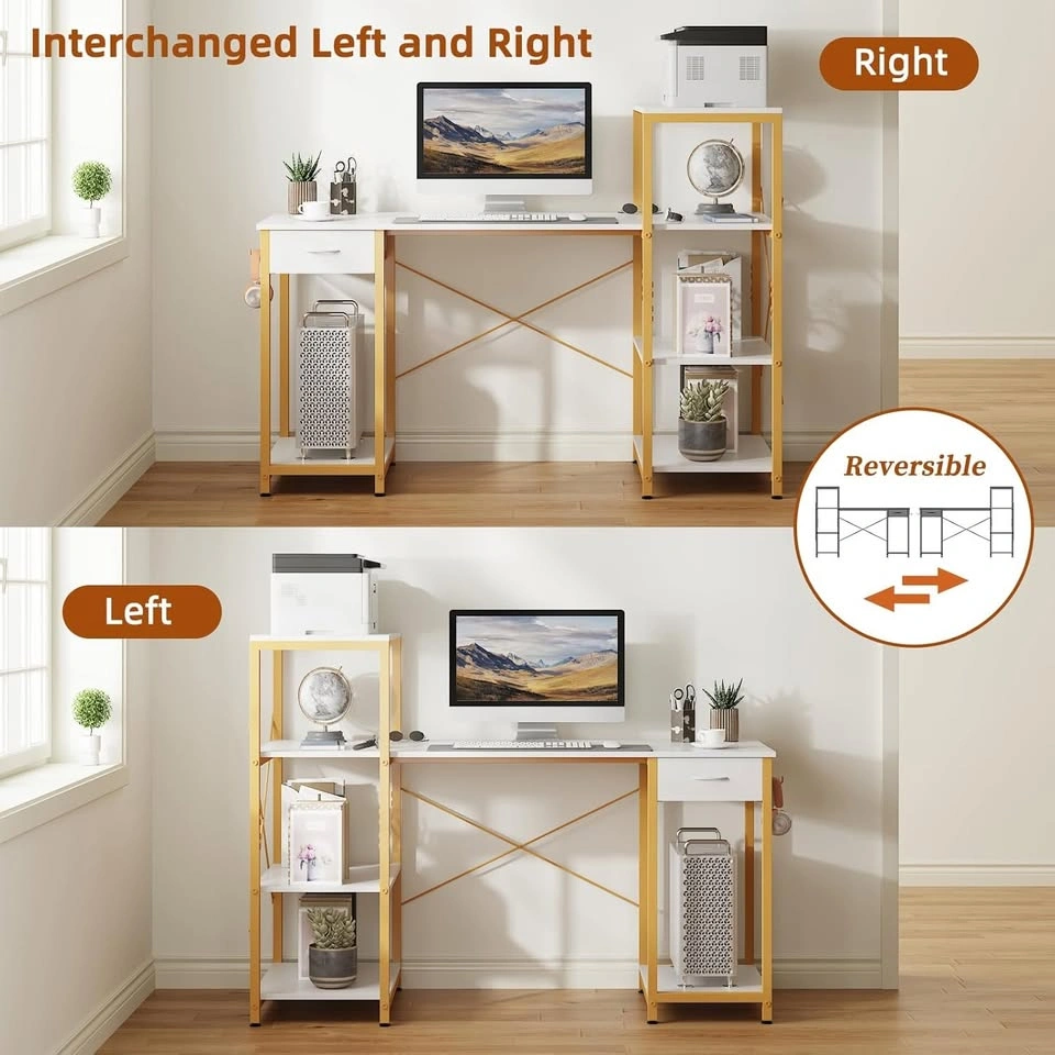 Modern Industrial 55-Inch Computer Desk with 4-Tier Storage. New, but one of the side pieces near the drawer is cracked (visible in photos). Pickup in Barrhaven, Mountshannon and Daventry street intersection. Size: 55" W x 50.8" D x 105.9 cm H 14" widened shelf for heavy printers or office devices (top shelf supports up to 70 lbs) Extra CPU/host stand and fabric drawer included Reversible shelves: customize left or right side Sturdy alloy steel frame with X-brace and non-slip leveling feet Smooth, waterproof engineered wood surface Easy assembly with included instructions and tools