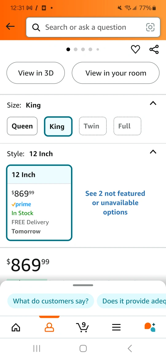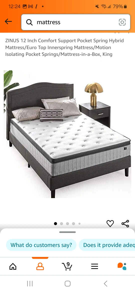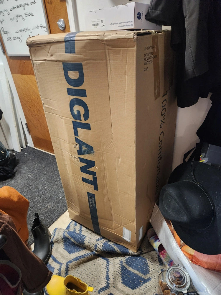854King size mattress. 12 inches thick. Memory foam. In a box. wrong size bought ZINUS 12 Inch Comfort Support Pocket Spring Hybrid Mattress/Euro Top Innerspring Mattress/Motion Isolating Pocket Springs/Mattress-in-a-Box, King https://a.co/d/5HfhXq3 pick up only
