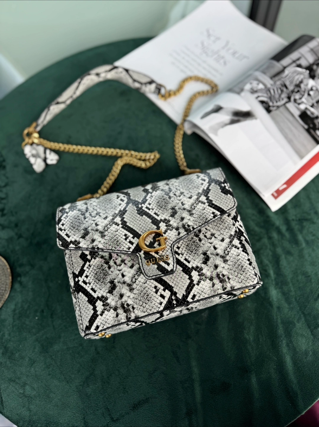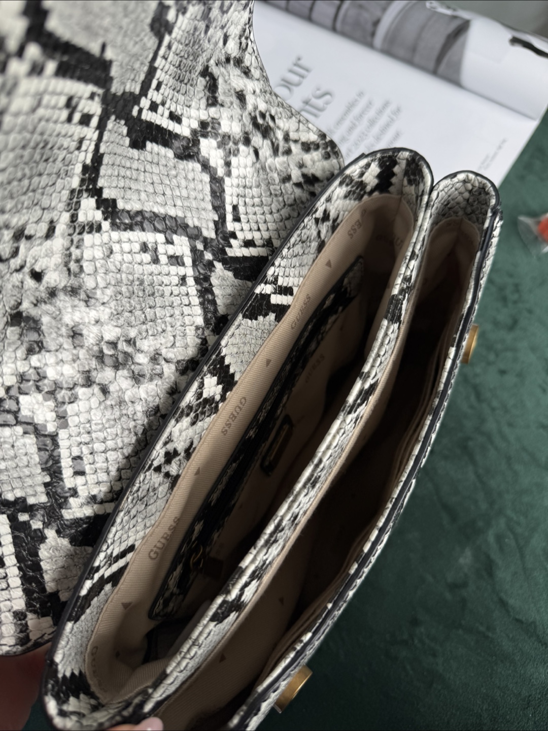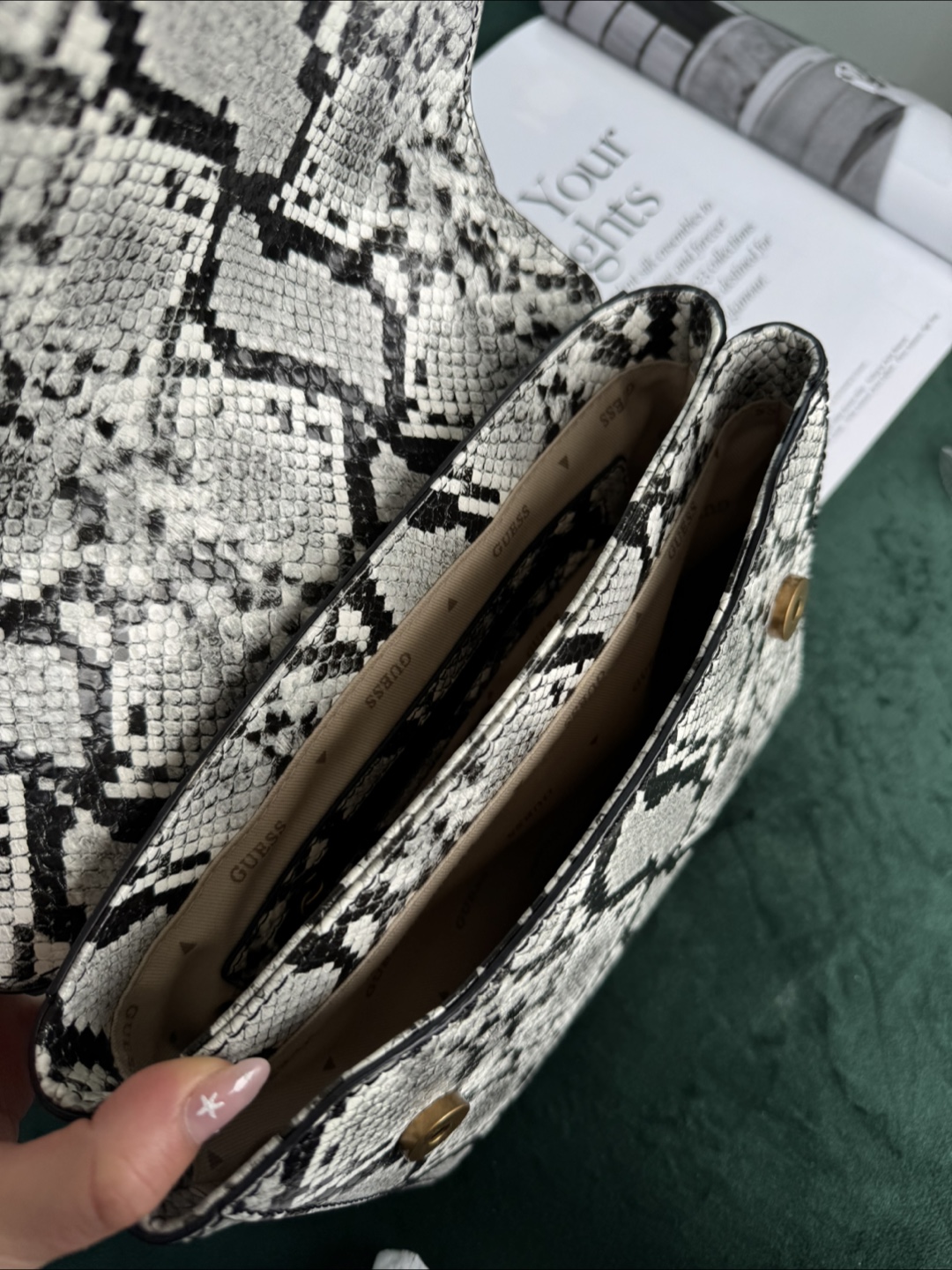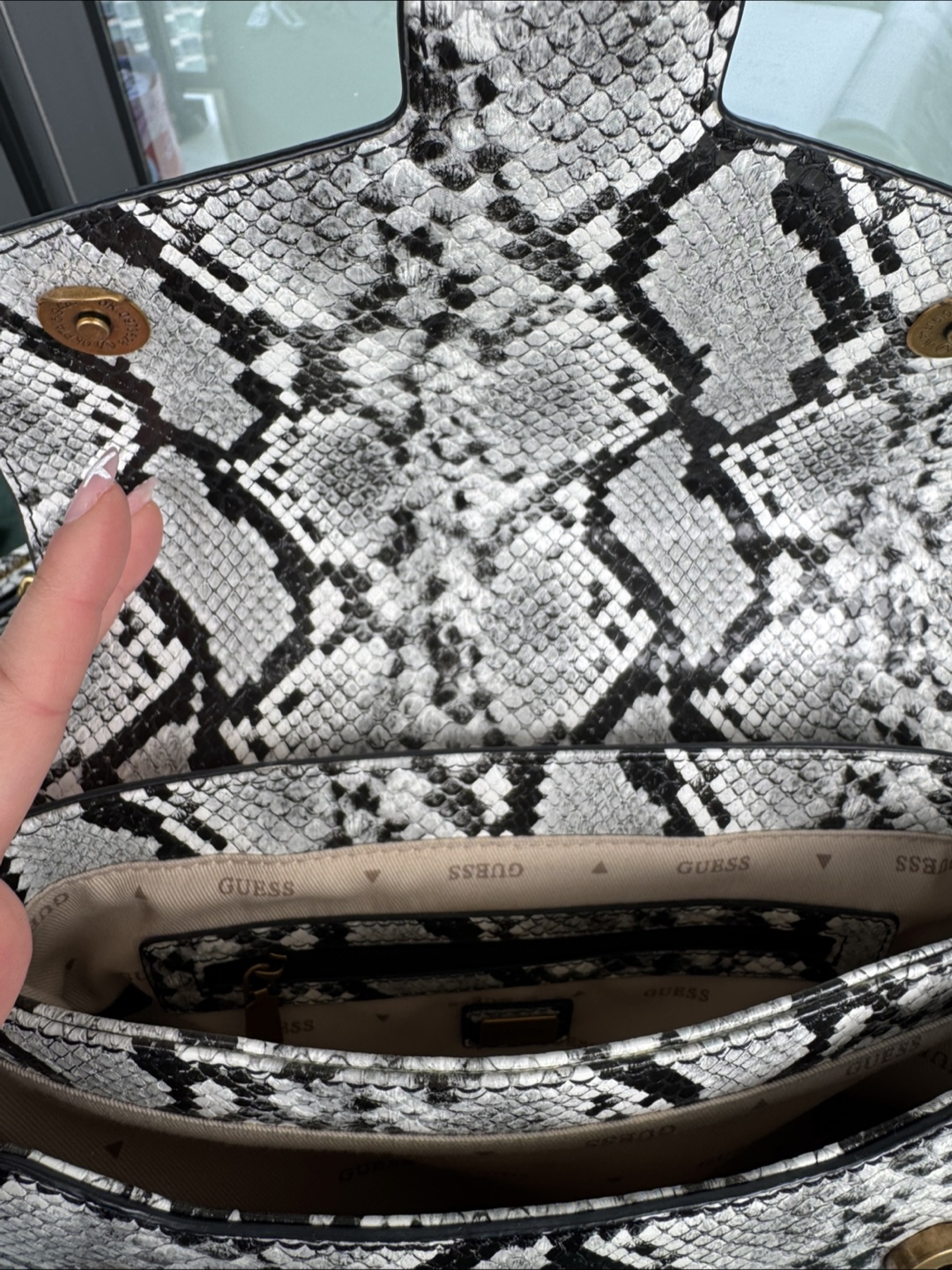 Selling a gently used GUESS crossbody bag with faux snakeskin texture.