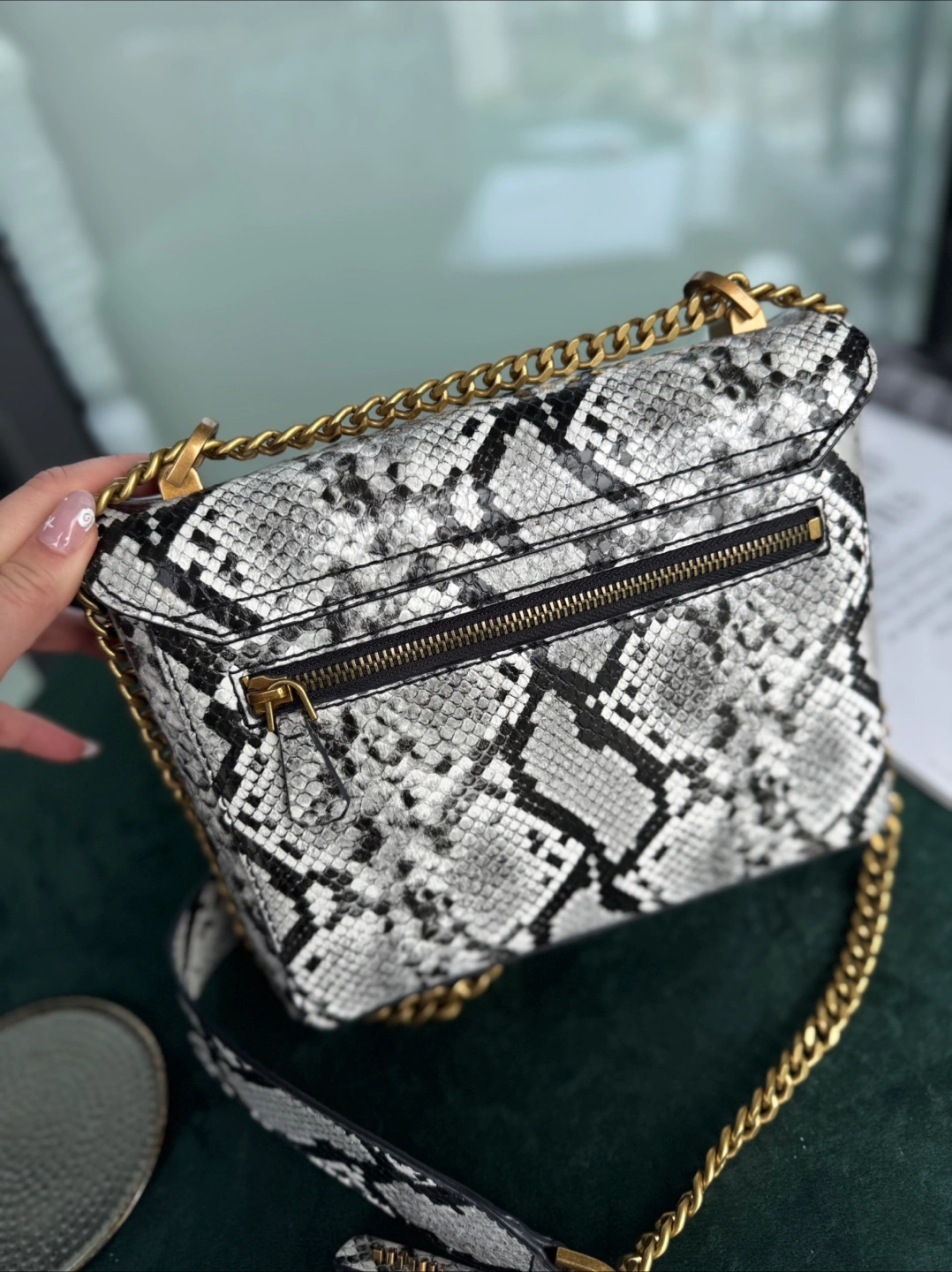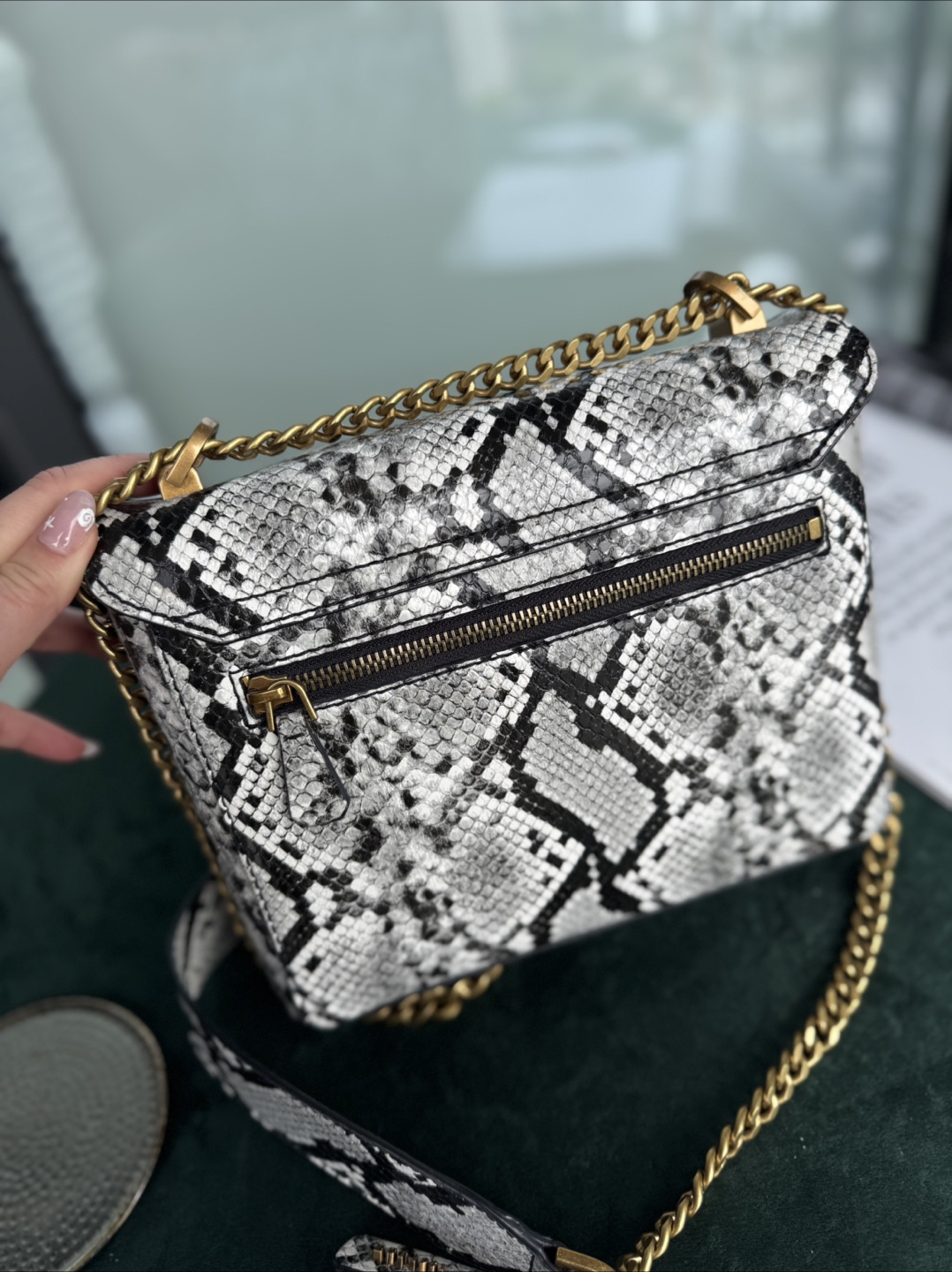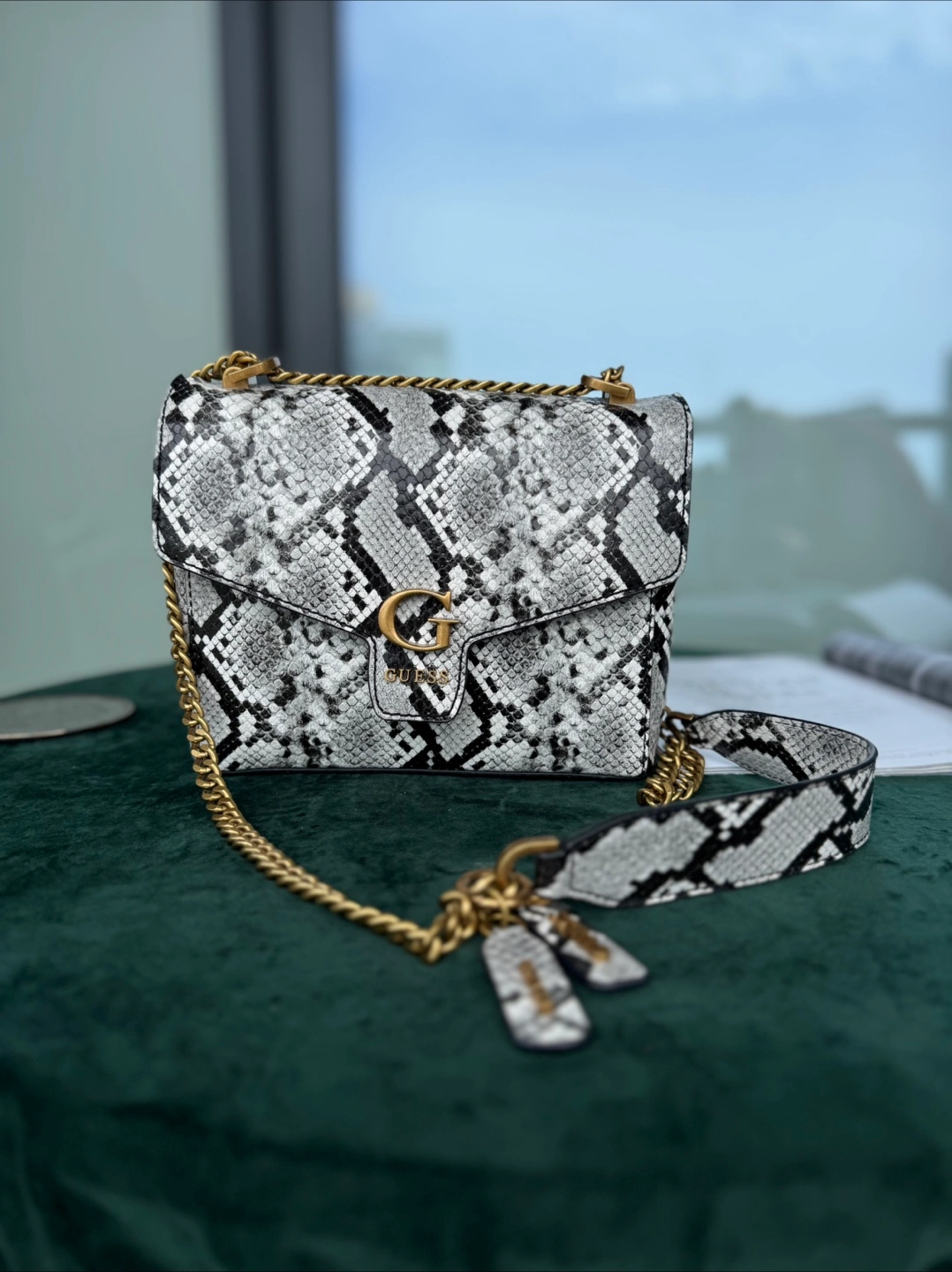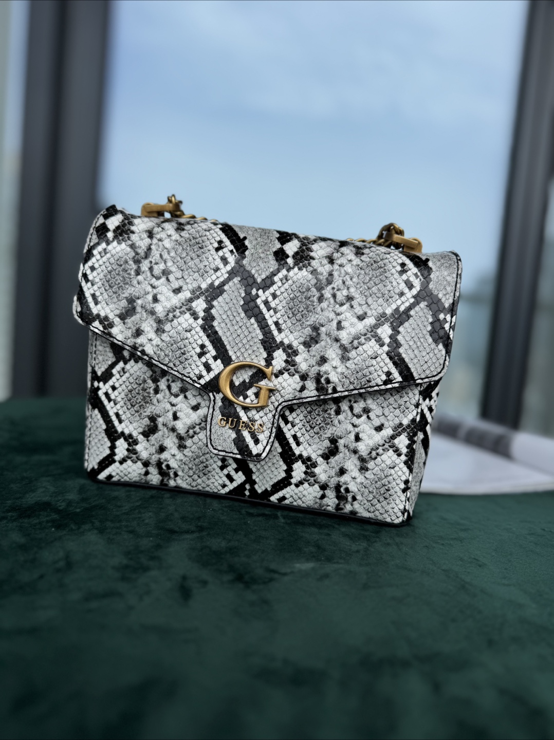 Selling a gently used GUESS crossbody bag with faux snakeskin texture.