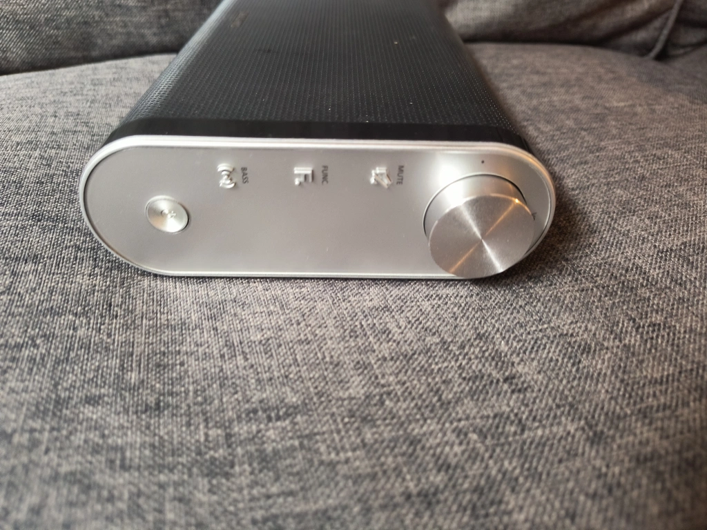 Works great, has very good sound quality. Comes with charger. Has NFC pairing, Bluetooth, and Aux. Can be used as a sound bar. Battery holds a charge.