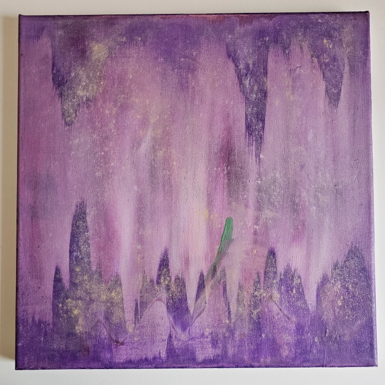 A beautiful canvas painting. Features a purple colour scheme with texture. Could bring a sense of peace to any room.