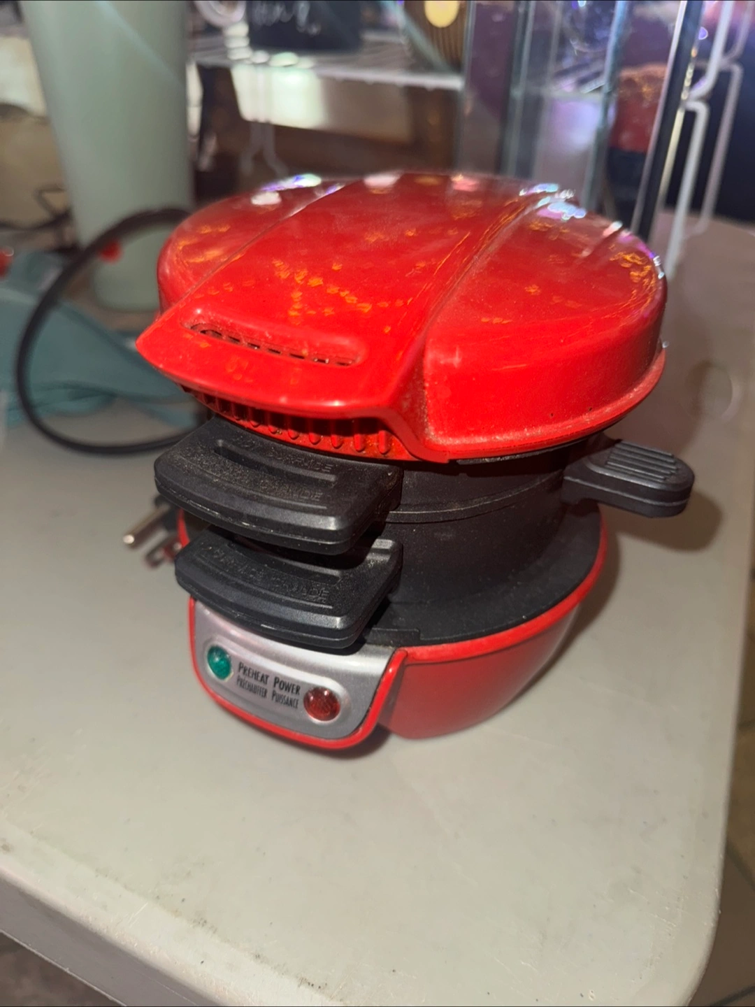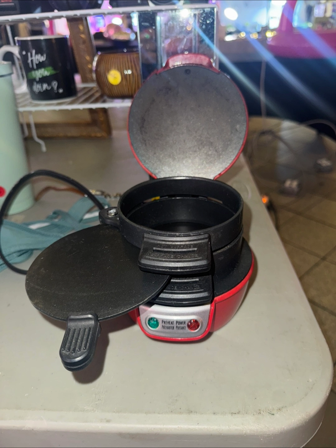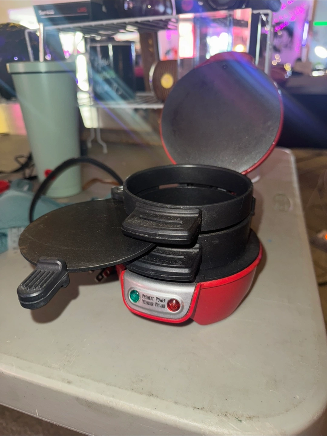 Great little breakfast sandwich maker! Has sliding compartments that allow you to cook each piece and then put it all together (muffin, egg, ham, etc)