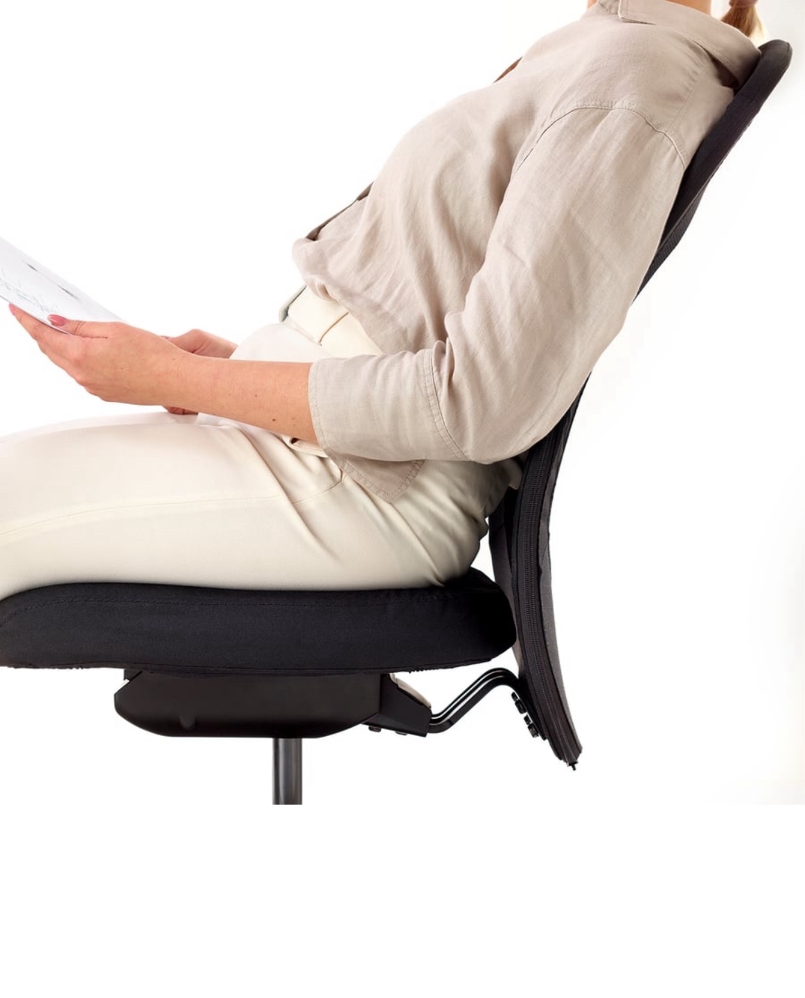 Black office chair. Mesh back. Padded seat. Five-star base with casters. This chair is sure to make your work day feel better, more comfortable and less stressful.