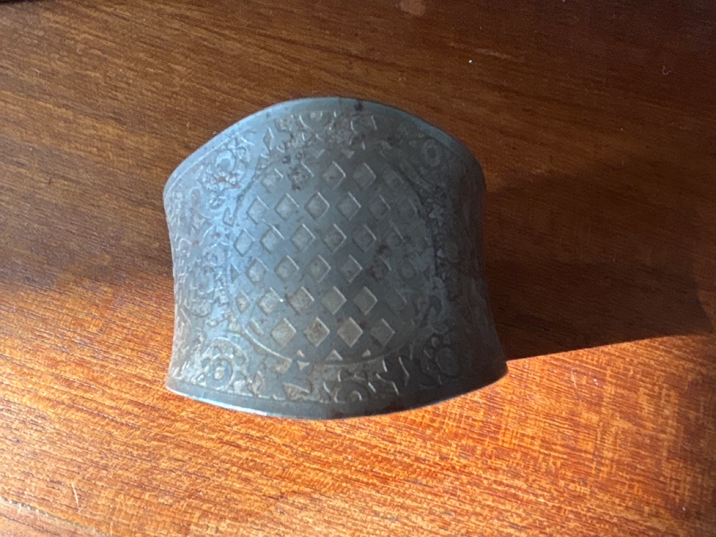It has intricate etched designs, which makes it visually striking. This bracelet will be a great addition to any outfit, providing a touch of uniqueness and charm to your style.
