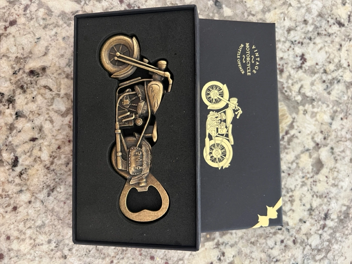 Beautiful bottle opener shaped like a motorcycle. Comes in a sleek black box. You can relax with this bottle opener after a long day. Includes a few extra Harley-Davidson stickers. Great Father’s Day gift for the guy who has it all!